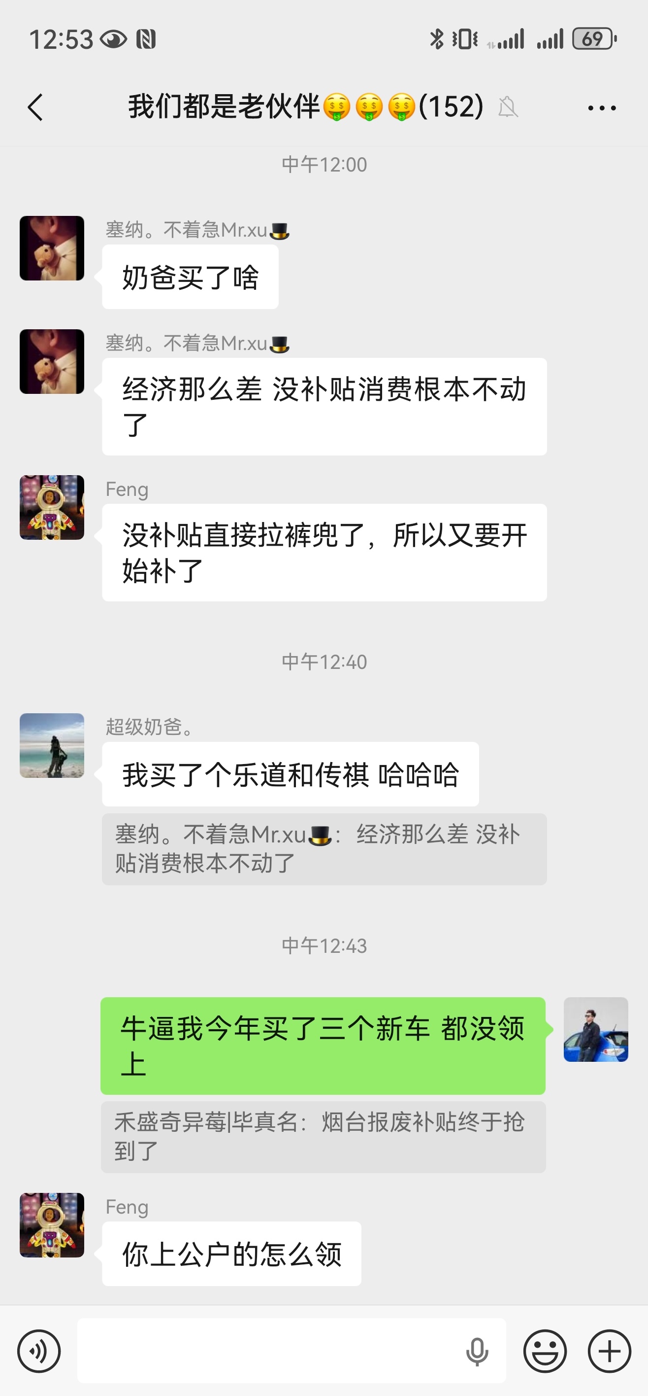 有个很早前的粉丝群都是认识十年左右的网友那时候这个群里的人都是买 3.5 塞纳的客户他们家里普遍也都有其它豪华车现在聊的话题全是国产车...