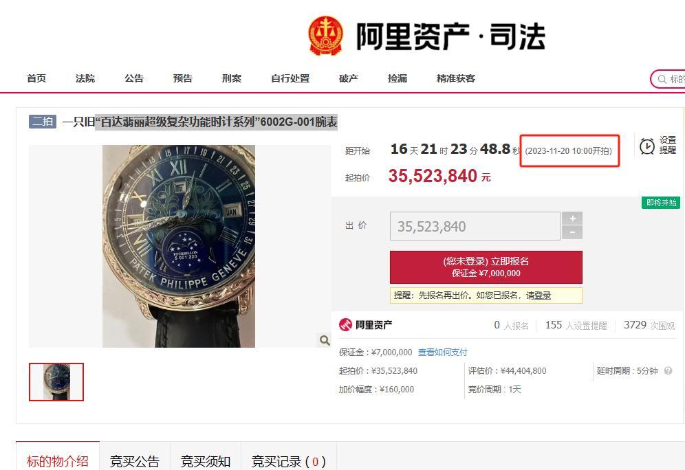 广东深圳的“黑老大”张伟,在狱中做梦都想不到,他曾经时刻佩戴的百达翡丽全球限量版豪华腕表,折价达1500万,被法拍易主了,拍卖前腕表专家评估价是4440余万。 2025年12月16日,阿里司法拍卖平台的一则成交公告打破了收藏圈的平静:原属张伟的百达翡丽超级复杂功能时计系列6002G腕表,以2877.4311万元的底价成交。 两名报名竞买人经过仅一轮出价,便敲定了这桩备受瞩目的交易。谁能想到,这块集万年历、陀飞轮、三问报时等数十项复杂功能于一身的“腕上天文台”,此前曾四次遭遇流拍窘境,起拍价从最初的3197万元一路下调,最终降幅超35%,相当于直接“蒸发”了一套深圳核心区域的豪宅总价。 作为百达翡丽最顶级的系列之一,6002G腕表堪称机械制表工艺的巅峰之作。其表壳内含上千个精密零件,手工打磨需耗时数月,全球年产量不足百枚,在收藏界向来有“硬通货”之称。 李嘉诚、布拉德·皮特等名流均以拥有一枚同款腕表为荣,在正规二级市场,这类限量款甚至常年溢价,部分绝版型号十年间价格翻倍。 张伟当年能将其收入囊中,足见其非法敛财规模之庞大。 这枚腕表的坎坷拍卖路,恰恰折射出市场对“涉黑资产”的警惕。尽管深圳市中级人民法院委托专业机构出具了35页的详细评估报告,但575万元的高额保证金首先过滤掉了绝大多数普通竞买者。 更关键的是,涉黑资产的特殊背景让买家顾虑重重:一方面,缺乏品牌官方认证的真伪溯源,高端腕表仿品工艺已极为逼真,非专家难以甄别;另一方面,“裸表”交付无任何原始凭证,后续无法享受品牌全球联保服务,一旦机芯故障,修复费用可能高达数十万元。 有资深表商直言:“正规渠道的同款再贵也有人抢,司法拍品再便宜30%也需谨慎,核心是信任链条断了。” 腕表的命运,正是张伟人生的残酷隐喻。这位原籍黑龙江鸡西的“深商风云人物”,曾以市人大代表身份示人,背后却打造了一个庞大的涉黑犯罪集团。 1992年,张伟带着2000元赴深圳打拼,从保安做起,2004年成立中科创集团后,便开启了“以商养黑、以黑护商”的罪恶之路。 他通过“88财富网”虚构投资项目非法吸储,再以高息放贷牟利,用摆场收数、非法拘禁、寻衅滋事等暴力手段催收,涉嫌故意伤害、行贿、敲诈勒索等11项罪名,其“保护伞”甚至包括深圳市委原副书记李华楠。 巅峰时期的张伟,财富积累堪称“疯狂”。除了这枚天价腕表,他还拥有评估价近2亿元的1536平方米观澜湖高尔夫大宅、私人空客飞机、游艇,以及另一块估值4129万元的百达翡丽腕表。 这些奢华资产,全是他压榨普通投资者、破坏市场秩序的“战利品”。据警方调查,其通过非法吸储等手段攫取的巨额资金,除了满足个人奢靡享受,更用于维系犯罪集团运作,无数家庭因他的骗局陷入绝境。 2019年4月,深圳警方成功打掉张伟涉黑集团,44名犯罪嫌疑人被依法逮捕;2021年,张伟终被判处无期徒刑,剥夺政治权利终身,并处没收个人全部财产及1217万元罚金。 随着司法程序推进,他的涉案资产被逐一查封处置:私人空客飞机以6334万元拍出,观澜湖大宅以1.6亿元起拍,如今这枚天价腕表的成交,标志着案件财产执行进入关键阶段。 法院明确表示,拍卖所得将优先用于退赔非法吸收公众存款案的受害人损失,剩余部分上缴国库,彻底斩断黑恶势力的经济根基。 值得关注的是,与这枚腕表同期处置的另一块同款百达翡丽腕表,目前仍在第五次拍卖进程中。业内人士分析,涉黑资产虽因特殊背景存在估值折让,但司法拍卖的公开透明,既实现了资产价值变现,也彰显了我国打击黑恶势力的坚定决心。 对收藏市场而言,这类“有故事的资产”虽话题性十足,但负面背景带来的价值贬损不可避免,最终成交价往往低于正常流通的同类藏品。 从时刻佩戴天价腕表彰显权势,到狱中听闻腕表折价易主的落寞,张伟的人生落差令人唏嘘。这枚百达翡丽腕表的流转历程更像是一面镜子:任何通过非法手段攫取的浮华,终将在法律的阳光下褪去光彩。 正如百达翡丽的广告语“你从未真正拥有百达翡丽,你只是为下一代保管它”,而张伟用罪恶换来的“保管权”,最终以最狼狈的方式终结——他不仅没能为自己留下财富,反而留下了洗不掉的罪恶印记,成为法治社会打击黑恶势力的典型注脚。 截至目前,张伟涉案资产的处置工作仍在持续推进。随着一块块奢华资产被依法清算,一个个受害人将获得应有的赔偿。 这背后,是司法机关“打财断血”的坚定行动,更是对黑恶势力的严正警示:无论伪装得多么光鲜,无论积累了多少财富,只要触碰法律红线、侵害群众利益,终将付出惨痛代价,所有非法所得也必将被彻底清算。 消息来源: 4000万元名表、2亿元豪宅…...昔日“黑老大”资产被拍卖,自称从保安做起 2023-11-04 16:26·新晚报