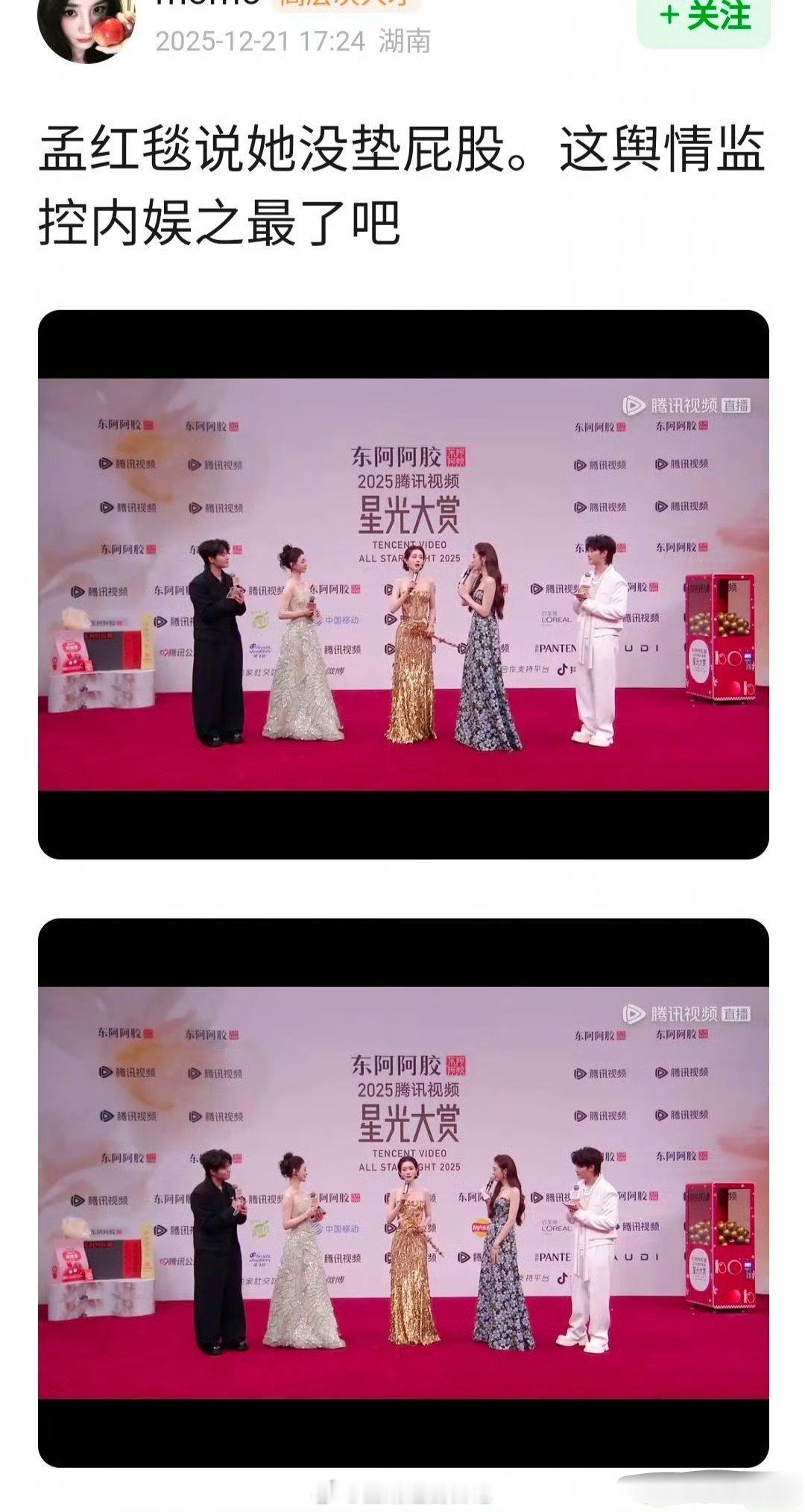星光大赏红毯,星光大赏直播,星光大赏出图 哈哈哈哈笑疯了孟子义回应这么快
