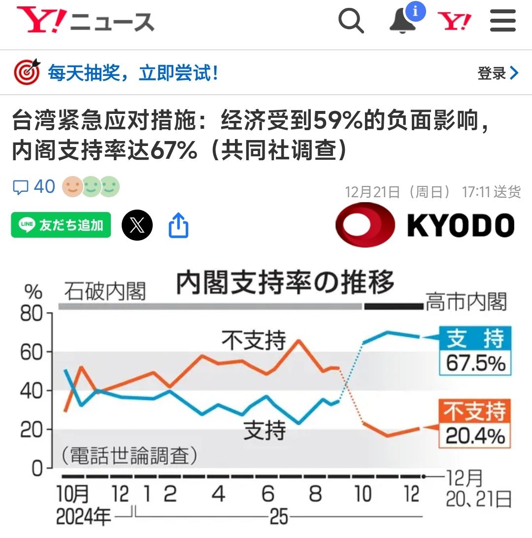 12月21号日本的共同社和每日新闻,同时发布了对高市早苗内阁的民意调查结果,高市