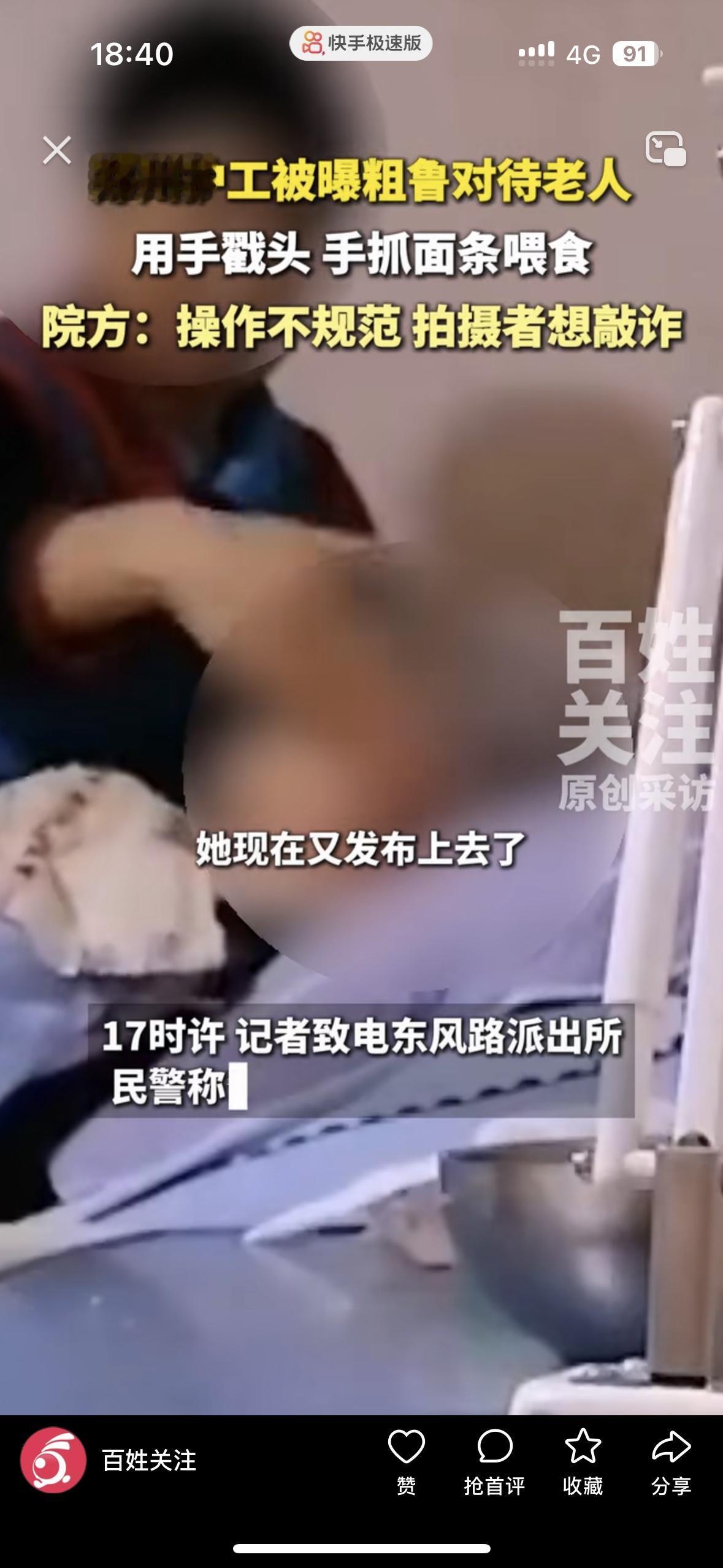 太恶毒了!这让他们的的子女看到得有多么心痛 郑州的护工用手抓着面条喂躺在床上的老人,还用手一直戳老人的头。可却被说是拍摄者敲诈勒索,明明是对老人的虐待和侮辱,子女是把老人送过来安享晚年的,没想到护工居然这么对待老人,让谁看到不心头一颤?