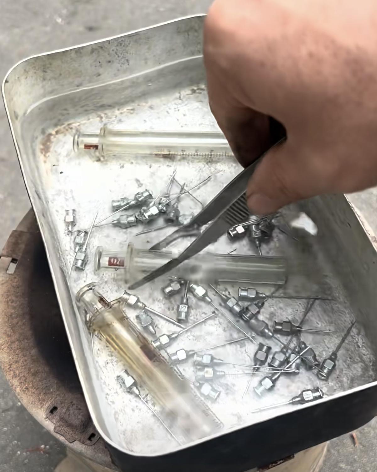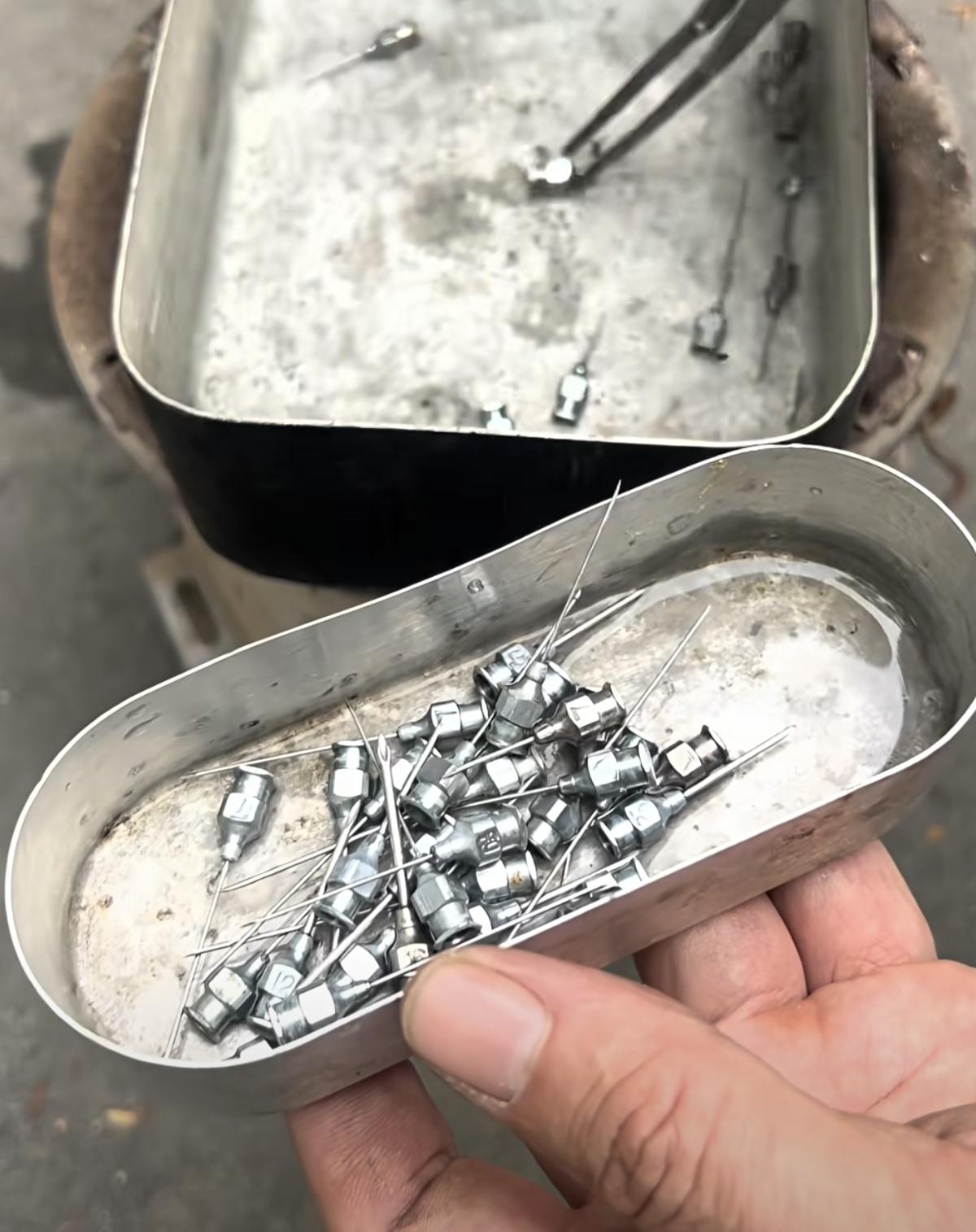 今天看到刷到一个视频,有个博主分享了以前社会用的重复利用针头,仅仅用开水煮沸消毒