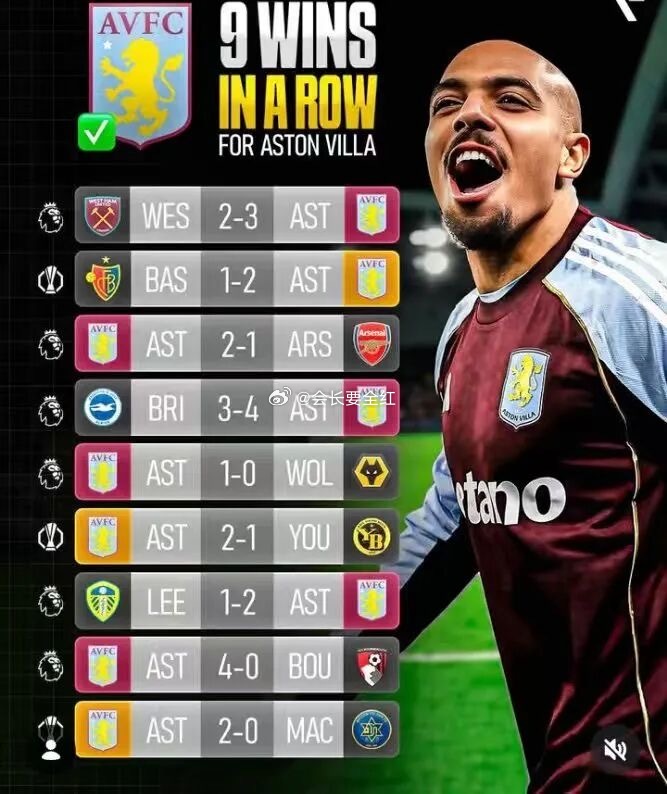 今日焦点 周日019  英超第17轮【英超3】阿斯顿维拉VS曼联【英超7】 12月22日 00:30英超接近半程,争冠也日趋白热化,昨晚曼城和阿森纳都顺利拿下3分,两队依然保持着2分的差距,而这个赛季最令人意外的争冠黑马阿斯顿维拉将在今晚迎战苦主曼联,各项赛事9连胜的他们也将挑战10连胜的纪录。加上近11场英超赢下10场的佳绩,他们上一次连续取得如此战绩还要追溯到100年前,今晚能否击败 再续辉煌?🔥(本场核心分析与方向,苹论区免费领取)