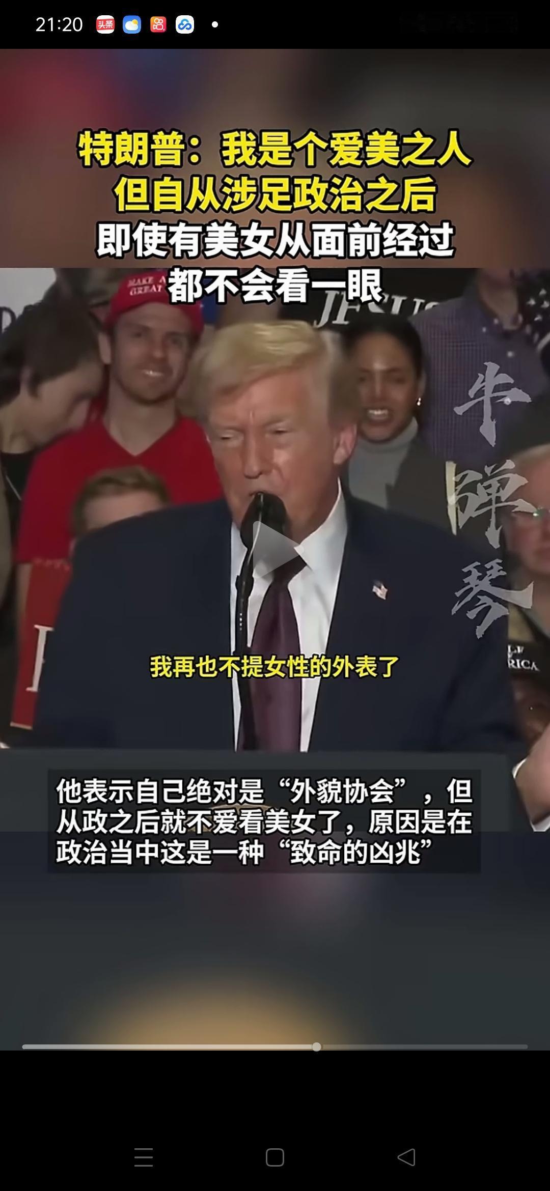 权力重要还是美女重要?特朗普说从政后对美女不再感兴趣! 当地时间12月20日,特朗普说,他是爱美之人,但从政后就不再对美女感兴趣。即使最美的女人从眼前走过,他也没兴趣瞄一眼。 不管特朗普做没做到,敢这样说话的人,全世界也不多,克林顿就不敢说。特朗普认为,从政的人,应该远离美女,在美女身上下功夫,可能要毁掉大好前程!看起来,特朗普的对手想在“色情”上扳倒他并不容易! 特朗普20条 特朗普与希拉里有哪些恩怨纠葛 特朗普最新演讲对美国政治有何影响