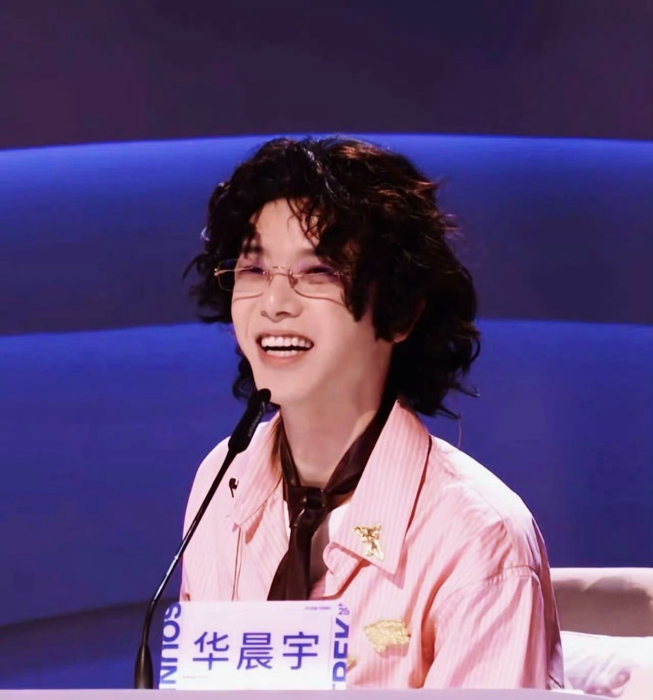 华晨宇卷毛小羊华晨宇一头卷毛➕粉色衬衫造型也太可爱了吧,好想rua~声鸣远扬直播
