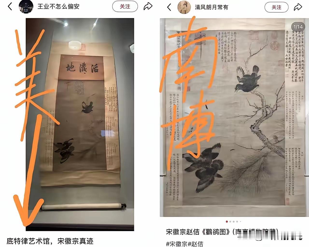 如果我是院长,我就把这幅古画鉴定为伪作!南京博物院和美国底特律美术馆各藏有一幅宋徽宗赵佶画的《鸜鹆图》,乍一看起来几乎一模一样!哪个是真迹,哪个是赝品,至今没有定论,都说自己的是真迹! ​第一张庞莱臣旧藏的宋徽宗赵佶《鸲鹆图》,现在收藏在南京博物院。美国底特律美术馆藏《鸜鹆图》,标的是真迹,但仔细观察,装裱翘边,纸张有做旧痕迹,画面乌漆嘛黑。 不过话又说过来,如果我当博物馆馆长,我也可以把庞莱臣捐赠的这幅画组织几个专家鉴定为赝品,因为真迹在美国标着呢,做的应属天衣无缝,以便拿到文物总店销售,再安排自己人以“顾客”名义低价买走。