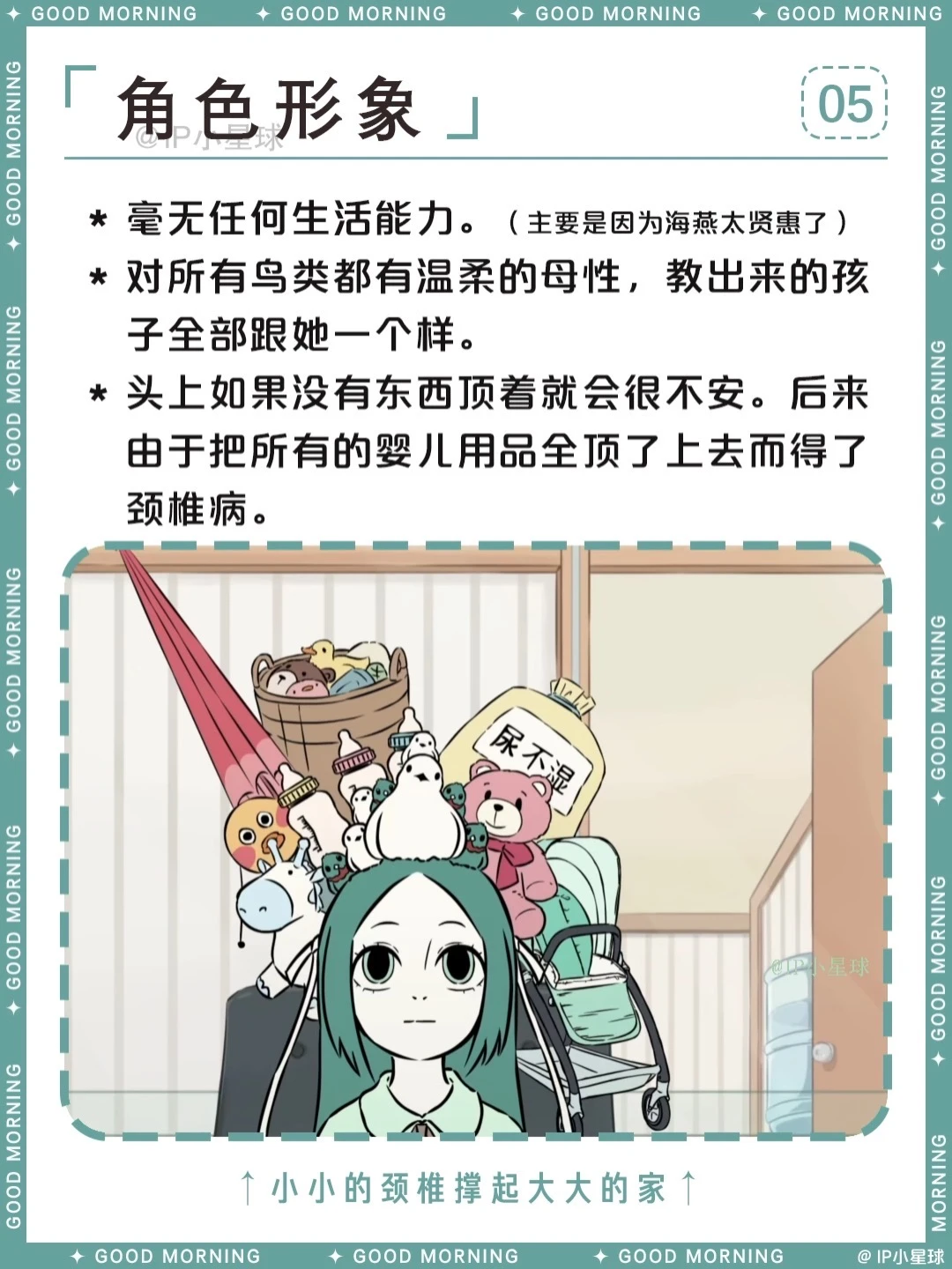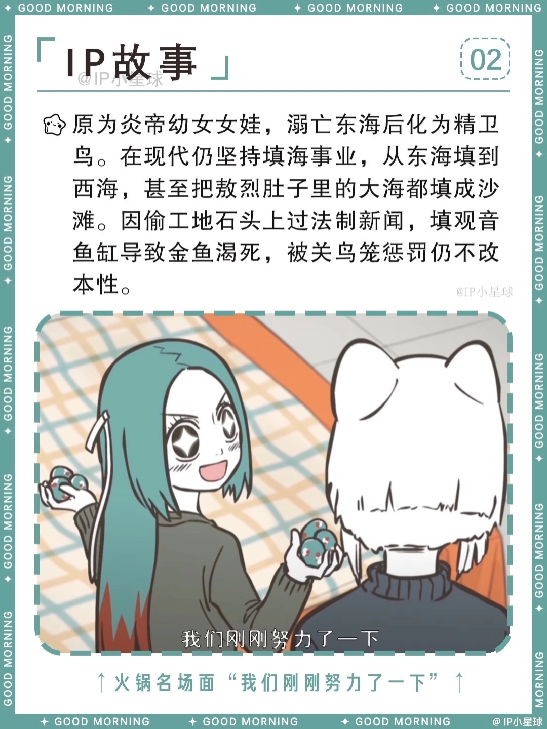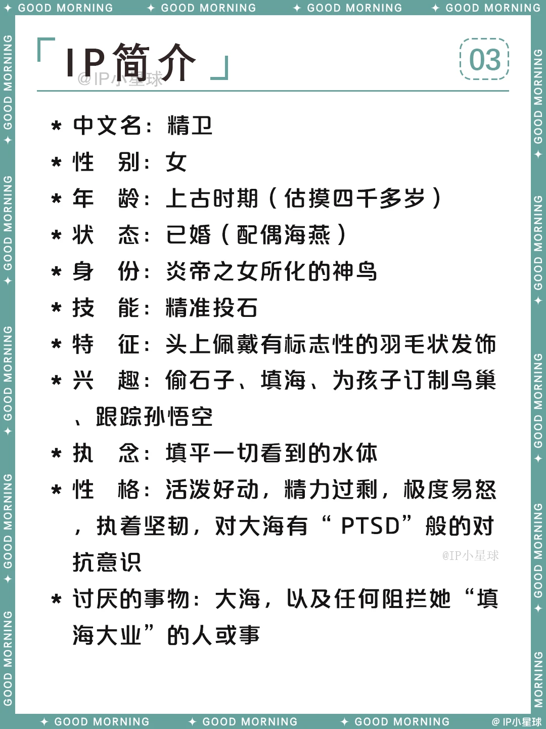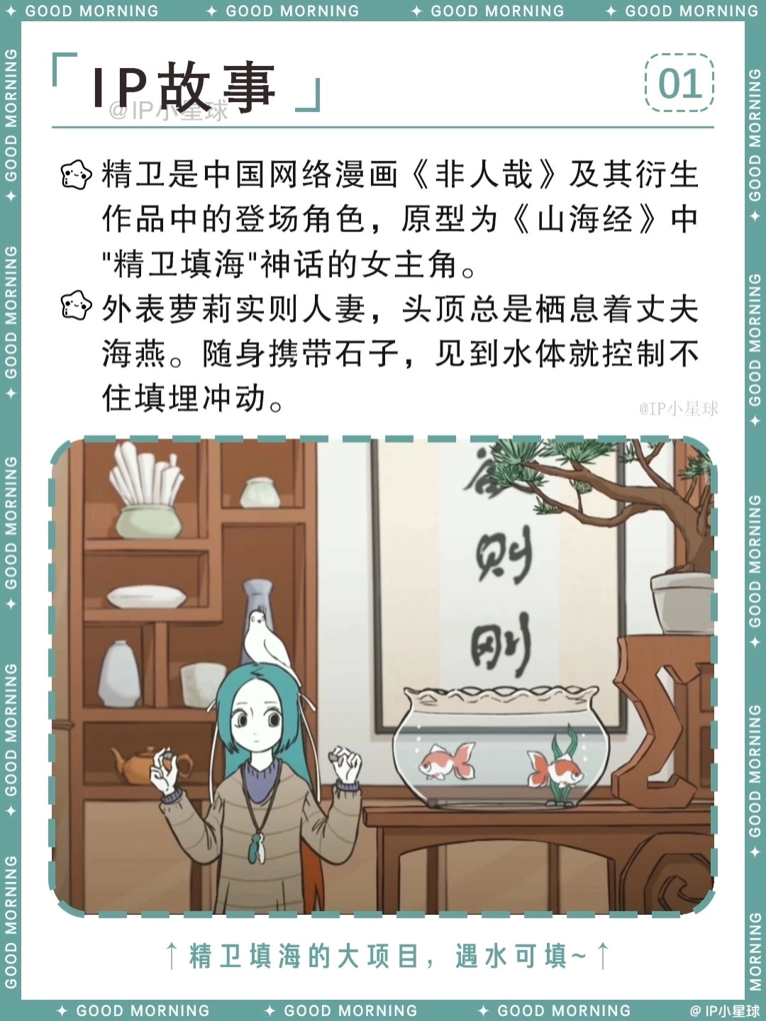 救命!《非人哉》里怎么会有这么可爱又暴躁的“填海达人”——精卫! 明明是炎帝的宝贝女儿,现在却是个看见水坑就走不动道、必须扔颗石子进去的强迫症少女!她对大海的“仇恨”跨越千年,游泳池、水杯乃至地上的小水洼都难逃她的“毒手”,男友海燕跟在后面都愁秃了! 每日一问:今天精卫填海(的水坑)了吗? ----------关于精卫---------- 中文名:精卫 性 别:女 年 龄:上古时期(估摸四千多岁) 状 态:已婚(配偶海燕) 身 份:炎帝之女所化的神鸟 技 能:精准投石 特 征:头上佩戴有标志性的羽毛状发饰 兴 趣:偷石子、填海、为孩子订制鸟巢、跟踪孙悟空 执 念:填平一切看到的水体 性 格:活泼好动,精力过剩,极度易怒,执着坚韧,对大海有“ PTSD”般的对抗意识 讨厌的事物:大海,以及任何阻拦她“填海大业”的人或事 📢整理不易,欢迎补充~ 🚀想先睹为快哪个IP? 快来评论区留下你的期待!📬