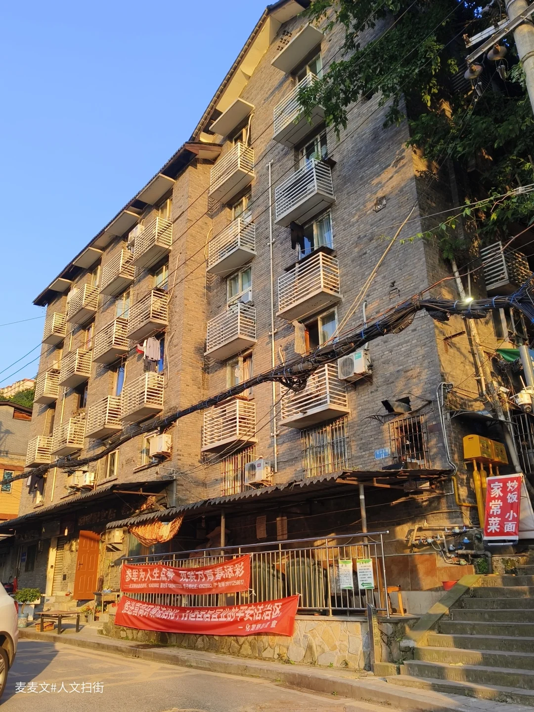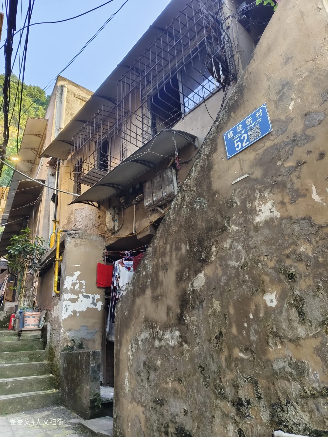 走进建设新村,仿佛穿越回旧时光。房屋依山而建,层层叠叠,有的甚至需要爬十几级台阶才能到达,典型的重庆爬坡上坎地貌。老街巷狭窄曲折,石板路被岁月磨得发亮,两旁是低矮的砖木结构房屋。站在巷子高处就能望见嘉陵江,江风拂面,别有一番风味。