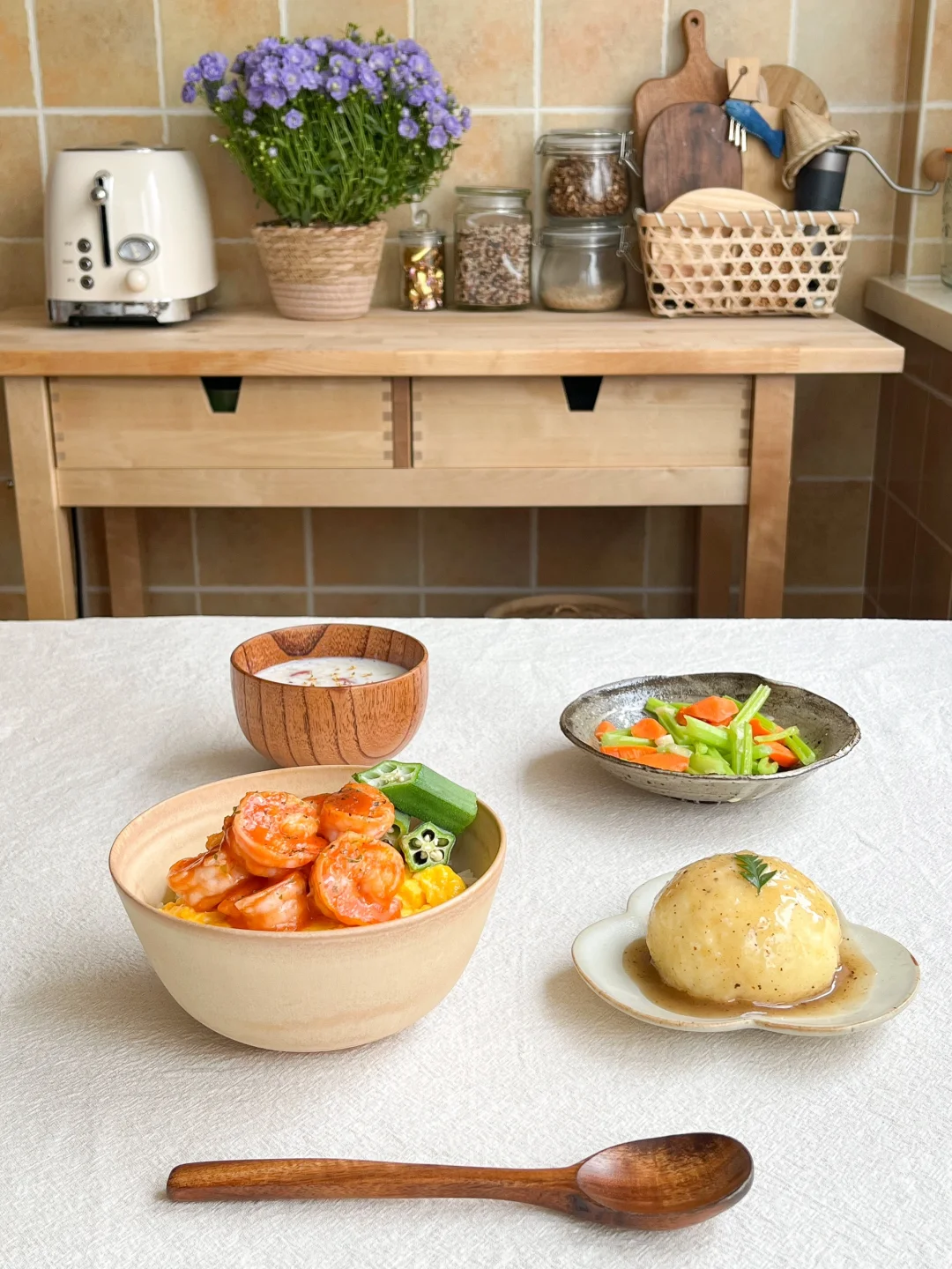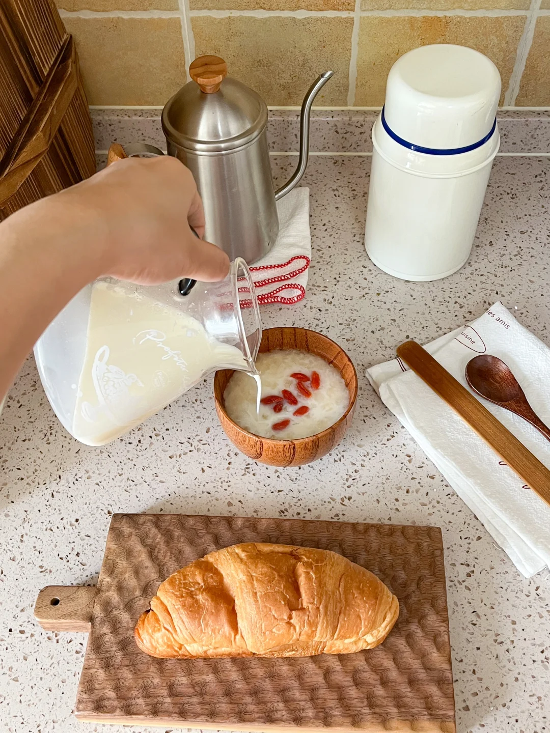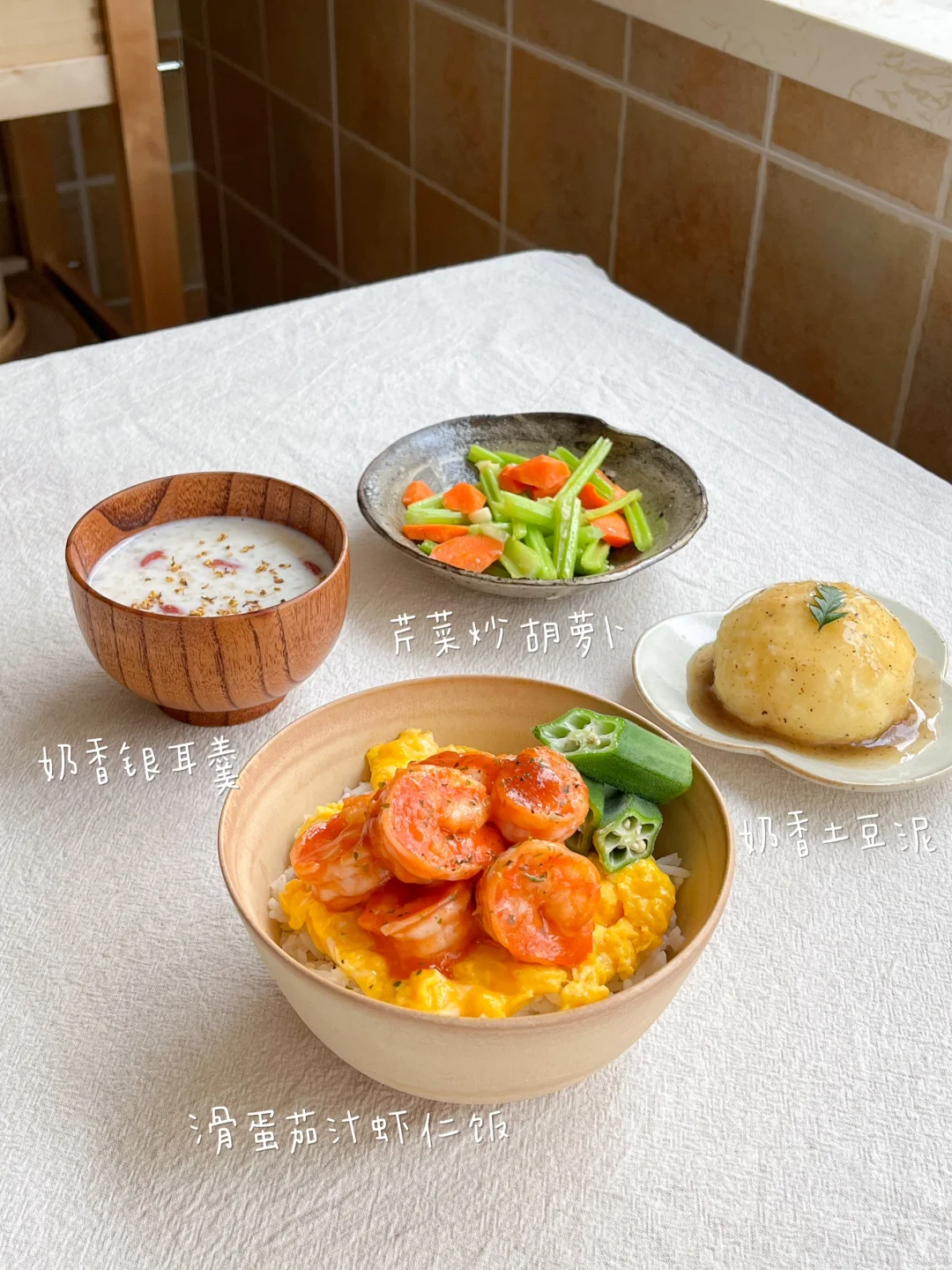 还给自己做了杯奶香银耳羹和土豆泥