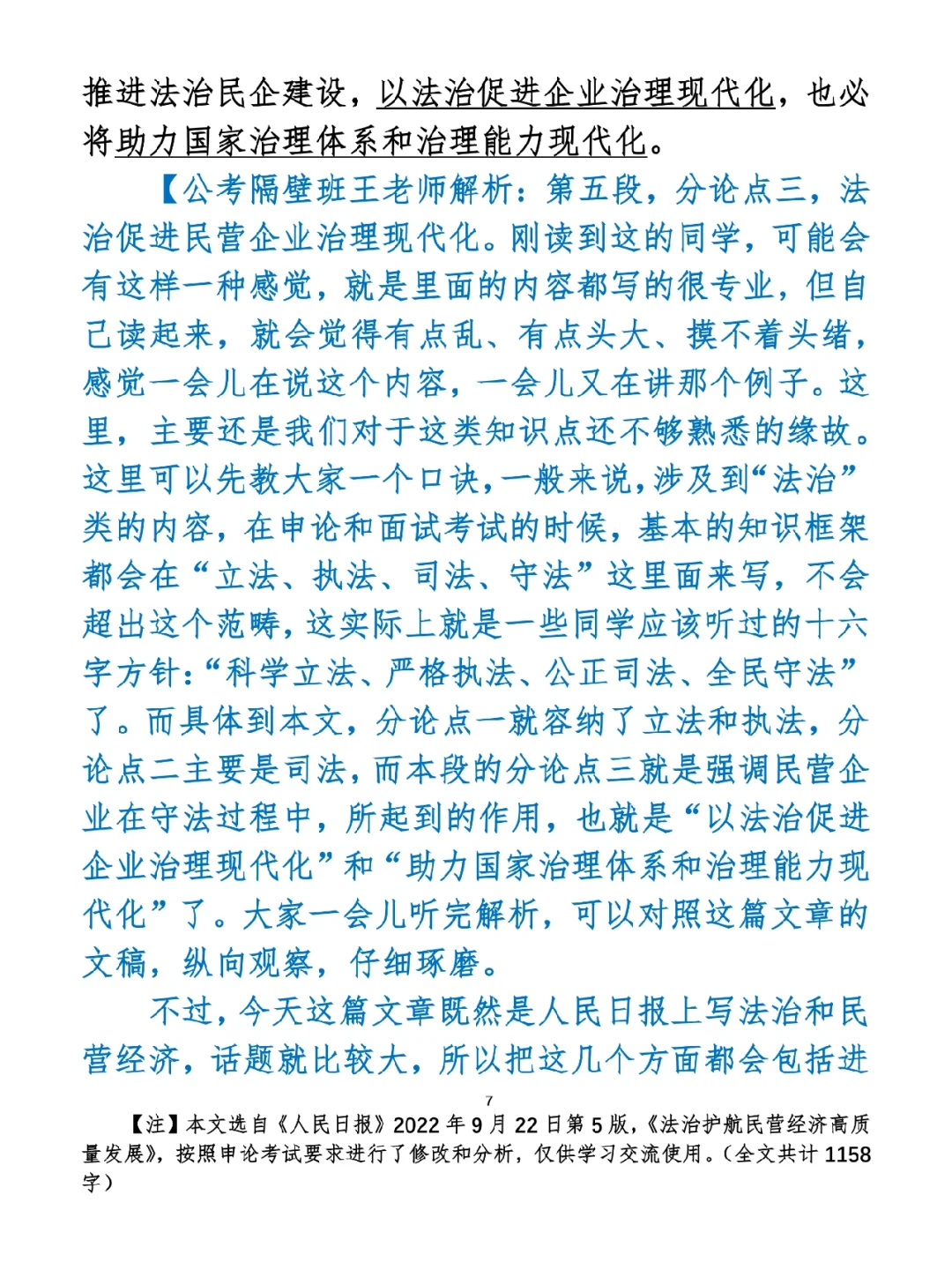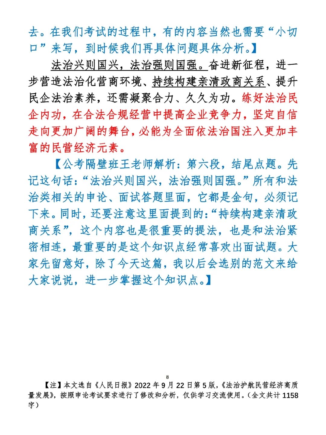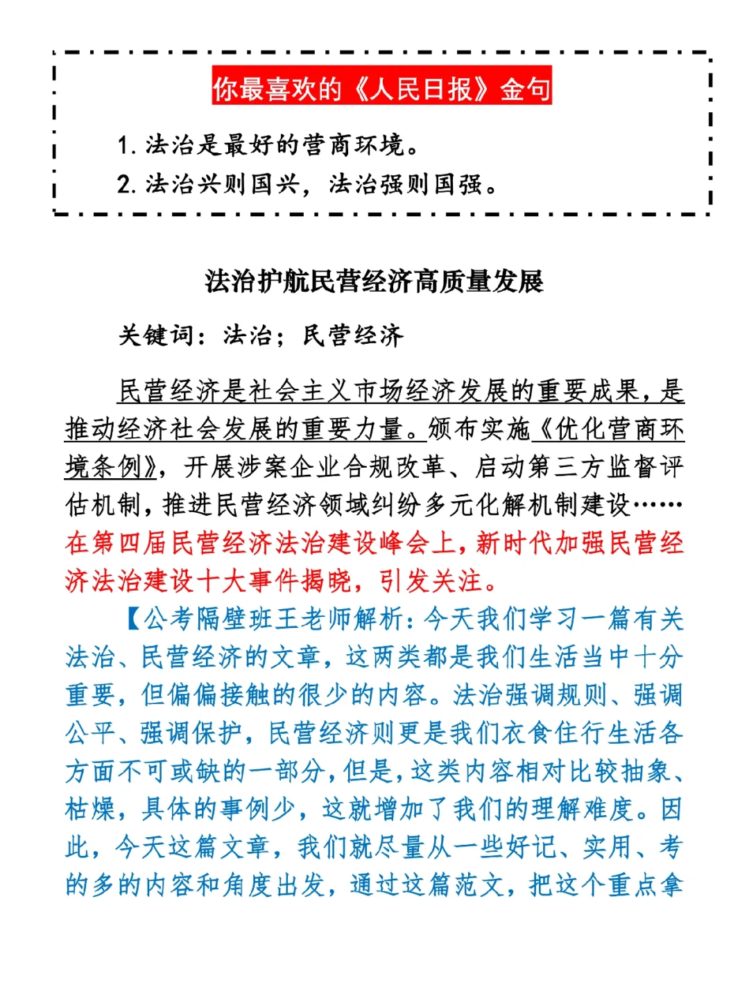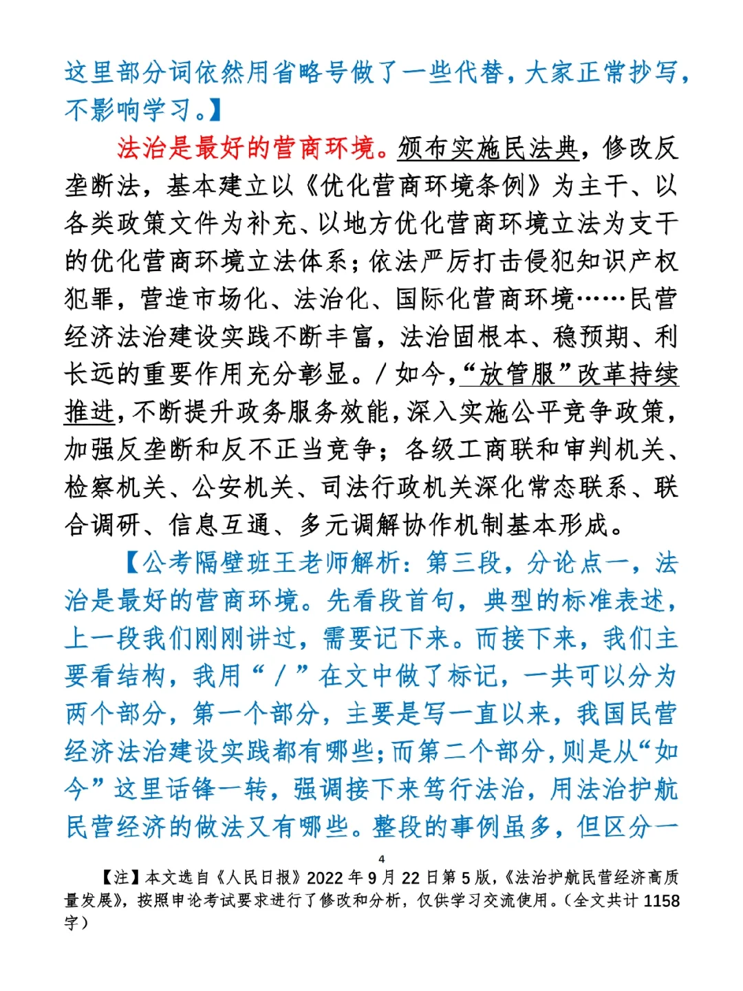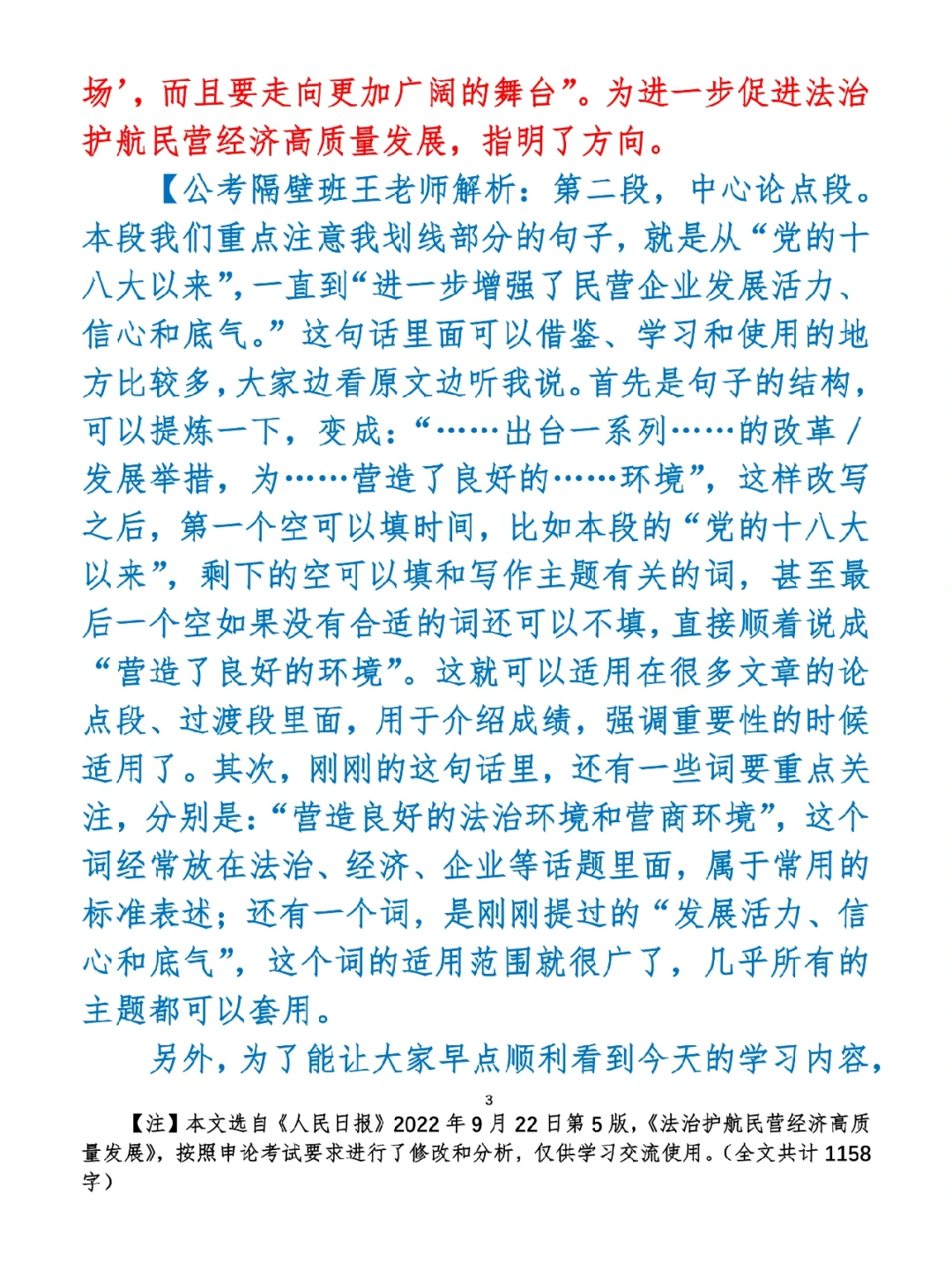 如何抄写:每天的抄写文章以图片形式发在“公考隔壁班王老师”账号,红色字是重点句和结构句,黑色字是正文,蓝色字是解析,大家抄写时不必抄蓝色字。建议先通读全文(包括蓝色解析部分),做到心中有数再开始抄写,效果会更好。