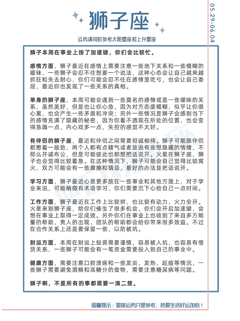 『白桃星座运势』5.29-6.4