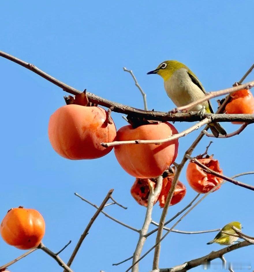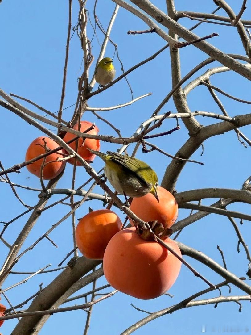 鸟粉投稿 柿子树上的暗绿绣眼鸟