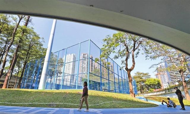 ▲罗湖“见缝插针”式改造33处桥下空间、金角银边。图为雅园立交桥下社区公园。