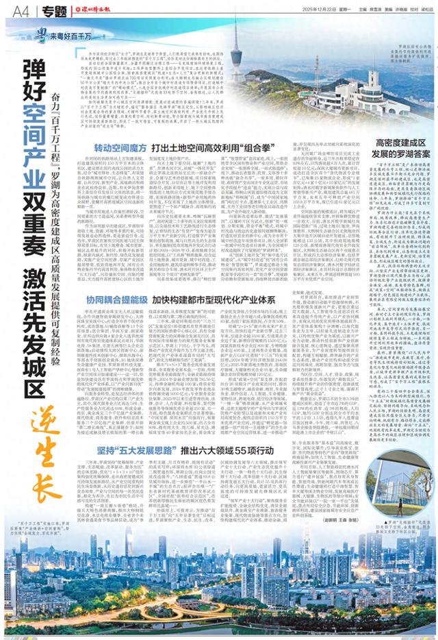如何破解先发中心城区空间资源错配、发展动能减弱的普遍困境?三年来,罗湖以“百千万工程”为关键抓手,锚定“服务强区先锋罗湖”城区定位,从影响城区经济社会发展全局的重点领域、关键环节着手,在土地空间高效利用、产业优化升级上先行先试,向存量要增量、向集约要空间、向创新要动能,努力探索超大城市高密度建成区可持续发展新路径,形成了一批可借鉴、可复制的成果,开启了一轮从城区肌理到产业动能的“逆生长”焕新。