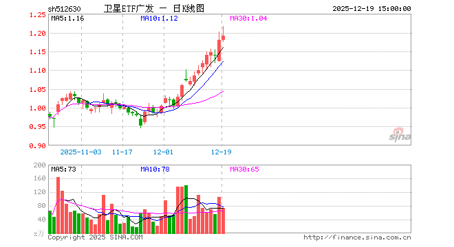 卫星ETF广发(512630)业绩比较基准为中证卫星产业指数收益率,管理人为广发基金管理有限公司,基金经理为吕鑫,成立(2025-10-13)以来回报为18.83%,近一个月回报为20.98%。