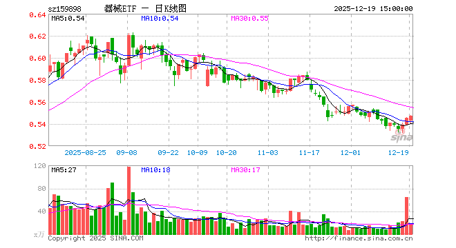12月19日,医疗器械指数ETF(159898)涨0.37%,成交额953.02万元。当日份额减少100.00万份,最新份额为8.70亿份,近20个交易日份额增加3500.00万份。最新资产净值计算值为4.76亿元。