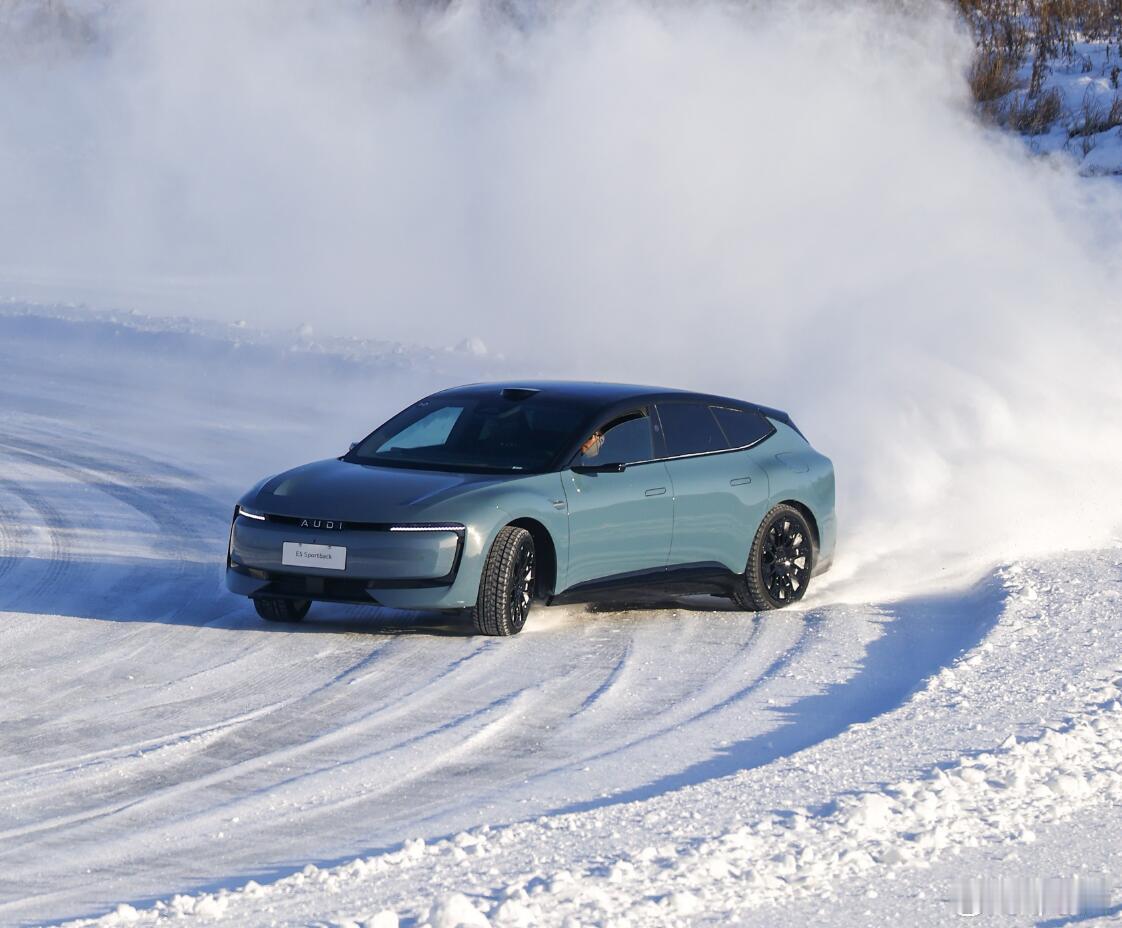 很难不让人想起曾经奥迪Quattro S1在WRC赛场上的雄姿!能在这种安全的场地上尽情撒欢,确实是每个车主梦寐以求的…..只不过呢,少了点引擎的轰鸣声,和泄压阀的呲呲声~全世界的奥迪E5车主都在盼下雪冰雪之上游刃有余