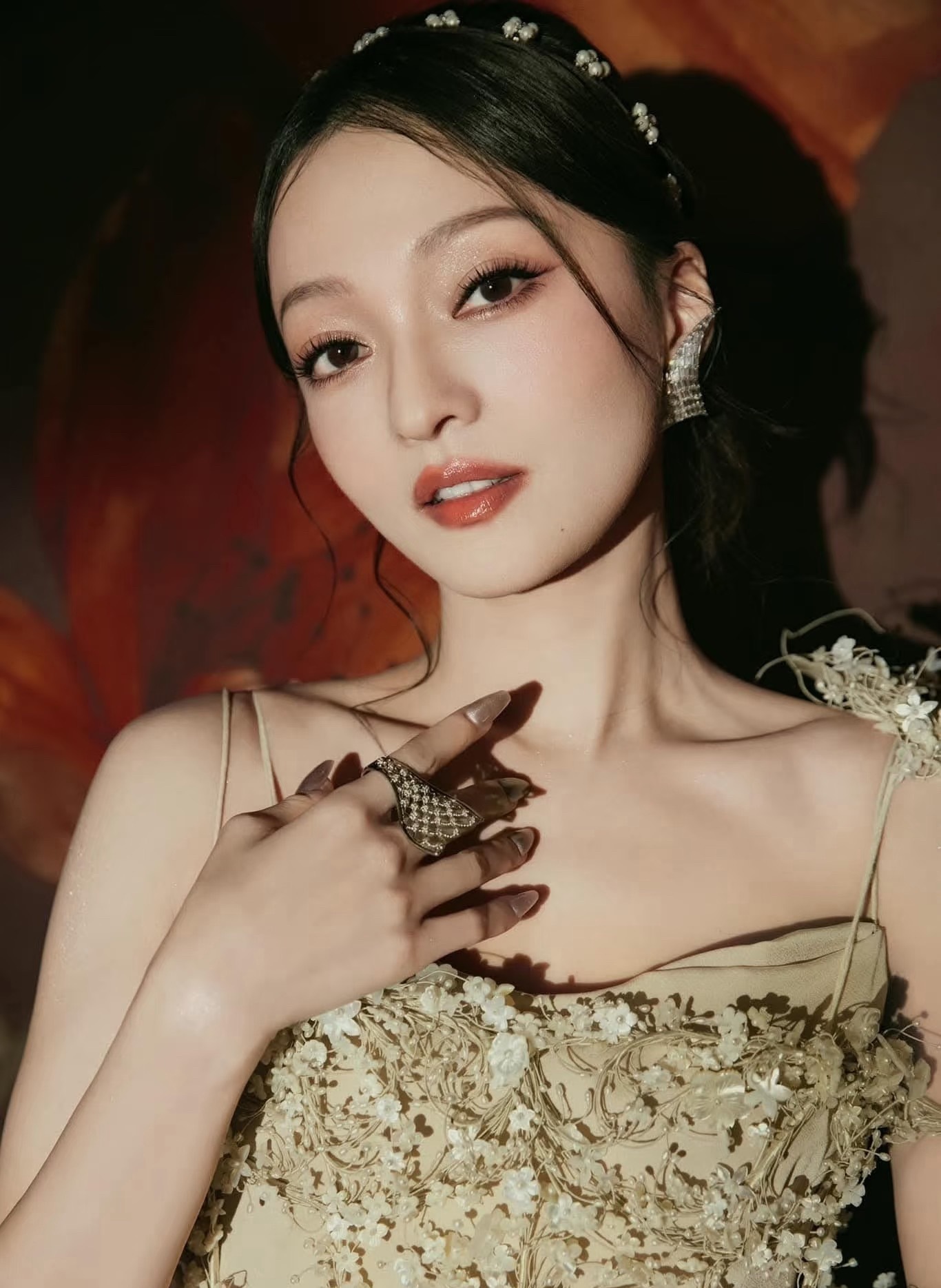 杨雨潼一袭缀着粉花的白裙,在光影里温柔得像带着香气的晚风,优雅又明媚。