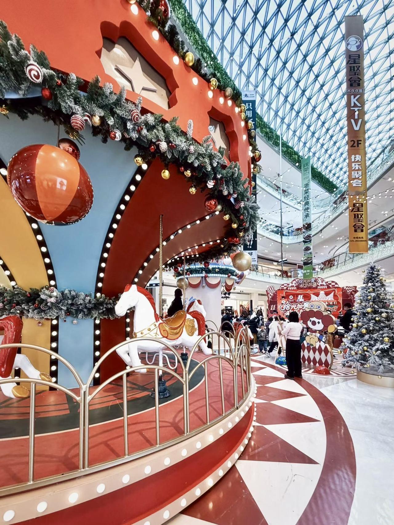 作为曲江商业常青树,金地广场今冬迎来11周年,整个周年庆活动,被塑造为巨型游乐场,从《长恨歌》歌舞剧团队现场演出、乌镇戏剧节巡游到室外无人机灯光秀…持续不断的输出轻松欢快的趣味节目。 而围绕『嘻乐浮岛』的节庆主题,金地将精巧灵动的旋转木马装置搬到室内中庭,小朋友们以积分兑换游玩次数,即可参与互动体验。 南湖边这场梦幻之旅将持续至2026.3.3,快来看看你和哪款星星人更Match。