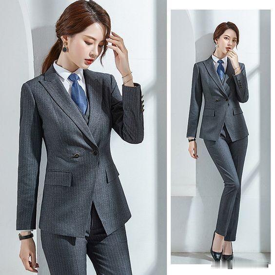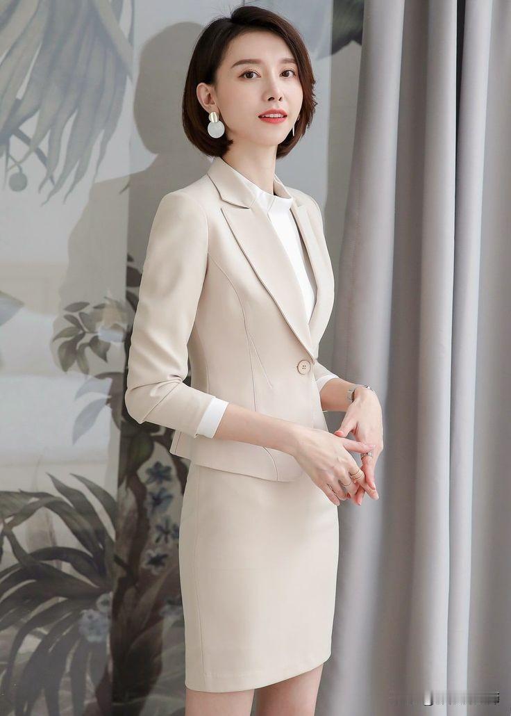 深蓝西装外套配白色内搭,这优雅职场风谁能不爱!我之前面试时就穿了这么一套。深蓝西装沉稳大气,白色内搭干净纯粹,一上身整个人气场都不一样了,瞬间干练感拉满。 在正式场合,它能让你看起来专业又靠谱。而且这搭配超百搭,下身配黑色直筒裤,简约又利落;搭卡其色半身裙,又多了几分温柔知性。不管是日常办公,还是重要商务洽谈,这身搭配都能让你轻松应对,优雅又自信地在职场发光! 职业装 穿搭 西装 灰色西装套装裙