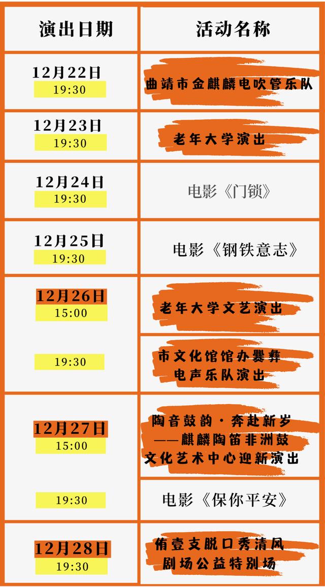 本周,曲靖“清风剧场”邀您邂逅精彩电影、畅享缤纷演出,在欢声笑语里,共迎即将到来的新年!