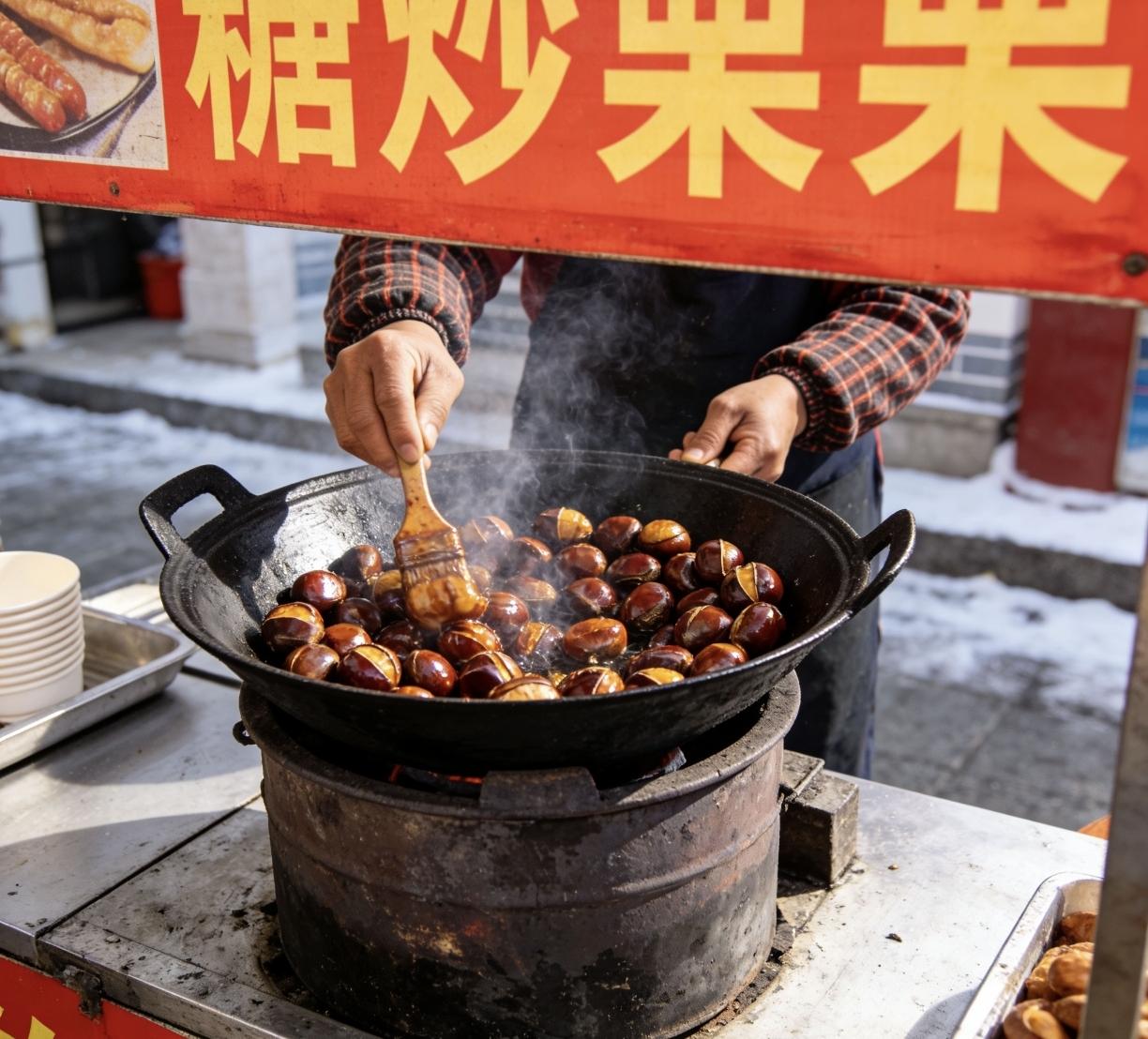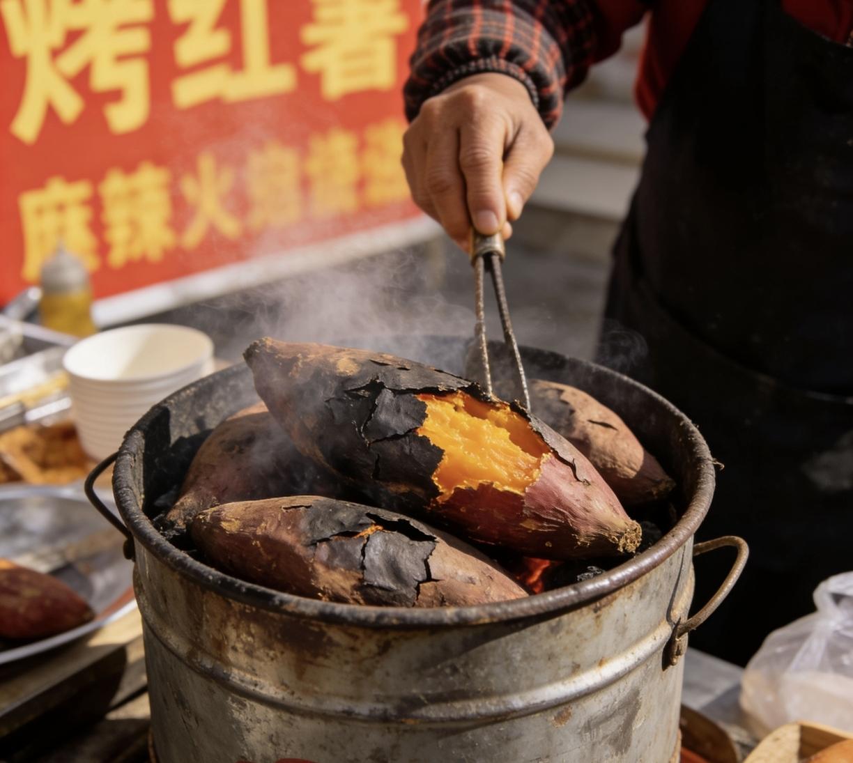 云南人的冬天,是揣在手心的暖。炭火上的烧饵块滋滋冒香,抹上甜酱卷根油条,软糯里裹着烟火气;烤红薯的甜香飘满街巷,掰开时金黄的瓤冒着热气;砂锅里的炒板栗油亮饱满,剥一颗暖到心坎;还有裹着晶莹糖衣的糖葫芦,酸脆解腻,一口下去,满是冬日的惬意与温柔。
