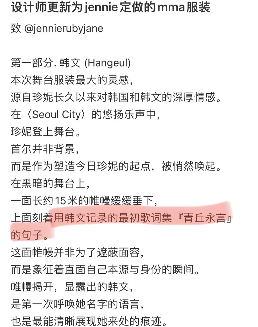 如何看待 Jennie 穿着写有汉字的舞台服被韩国网友夸赞弘扬韩国文化jennie舞台演出服出现汉字引争议 微博之夜 微博之夜年度推荐