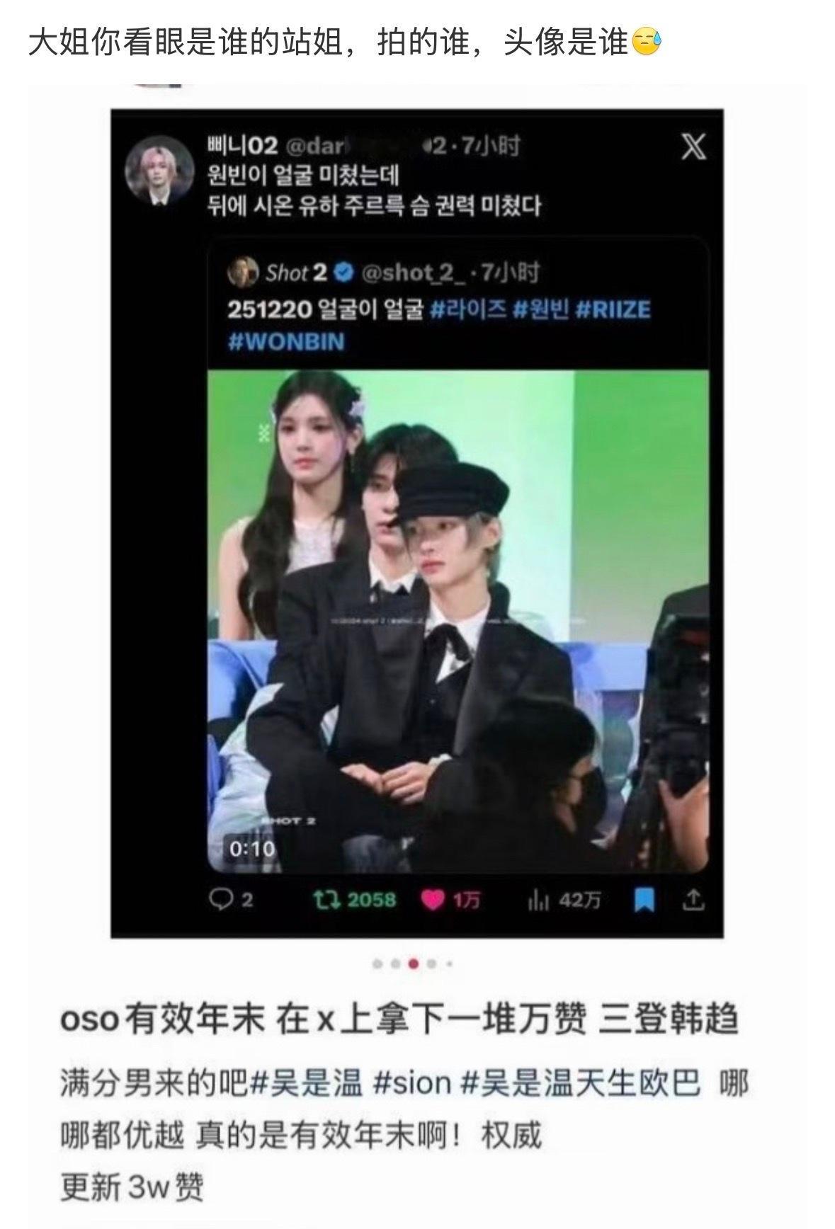怎么看吴是温 sjz 把朴元彬站姐拍的视频算进万赞称其为有效年末 Yushi和吴