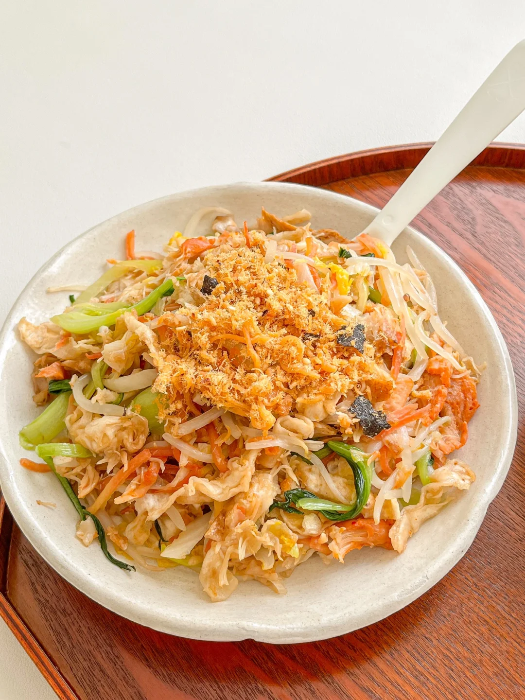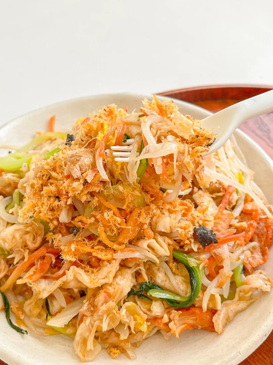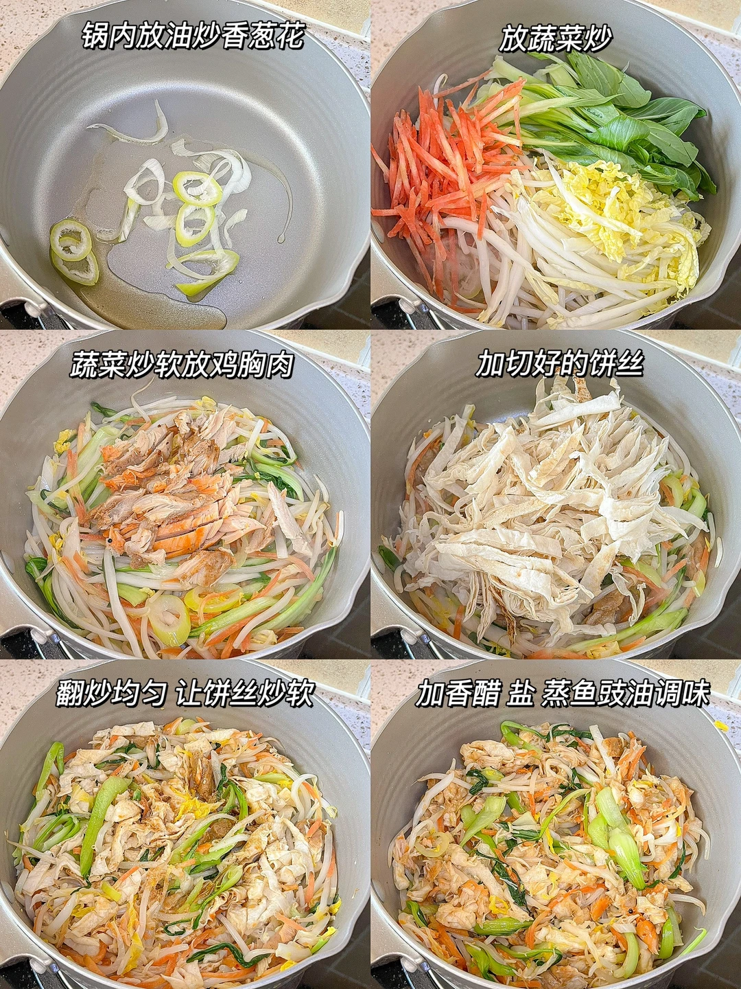 前一段跟风买了10包淄博小饼,后来发现根本吃不完[哭惹R]想个办法消耗一下冰箱库存~来做一份小时候经常吃的炒饼,蔬菜随便放,但是豆芽一定要放!脆脆的相当好吃[偷笑R]肉类我偷懒放的即食鸡胸肉,可以炒点牛肉或里脊肉都行,也可以炒一个鸡蛋~调味要烹一点醋,非常提味儿[赞R]