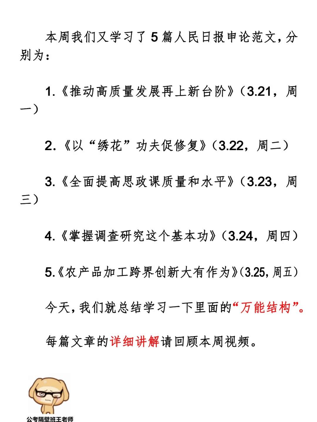 本周我们又学习了5篇人民日报申论范文,分别为: