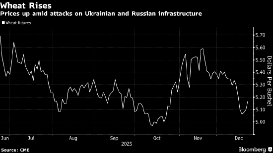 小麦价格攀升,因俄乌紧张局势升级引发对黑海地区农产品出口的担忧。大豆价格也同步上涨。