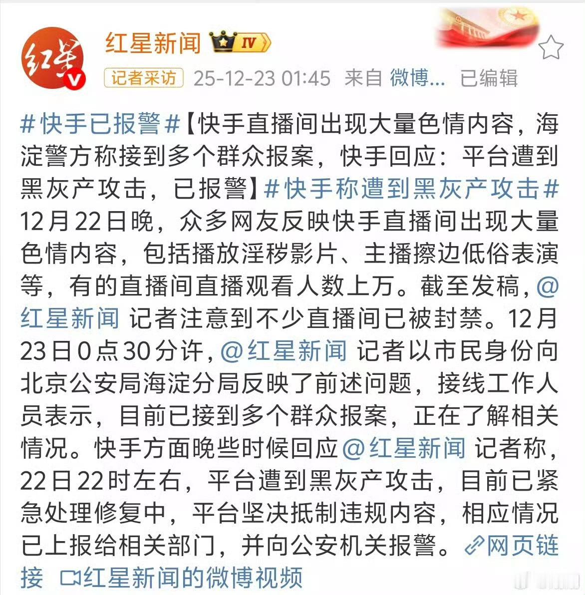 快手被黑产攻击,突然出现大量不雅直播间,快手在报警的同时,赶紧给相关部门汇报,这