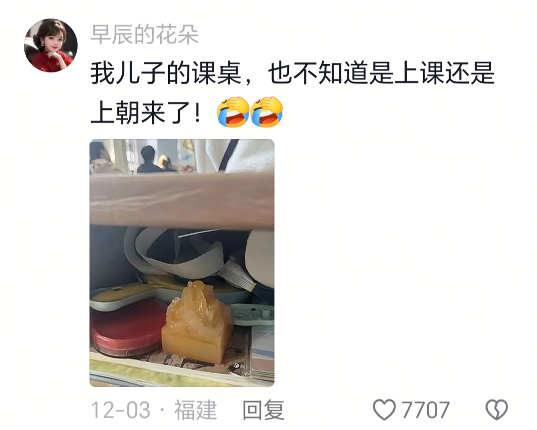 我儿子的课桌,也不知道是上课还是上朝来了!