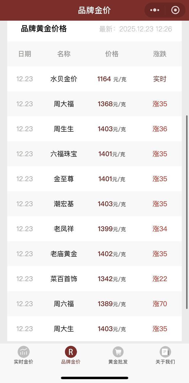 同时,国内黄金饰品价格也水涨船高。其中,周生生、老庙黄金金饰克价均站上1400元大关,较前一日分别上涨36元、35元。