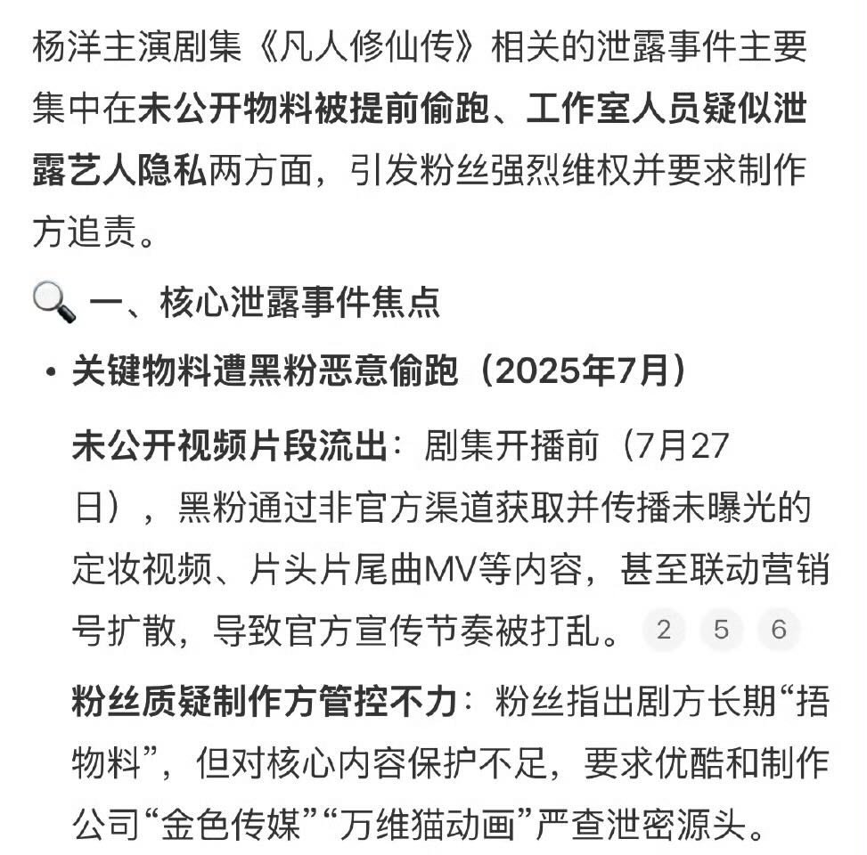 长安二十四计剧组就泄露的未公开内容发维权声明了。之前凡人修仙传也遭遇过非公开物料偷跑。怎么都在优酷泄露呢?