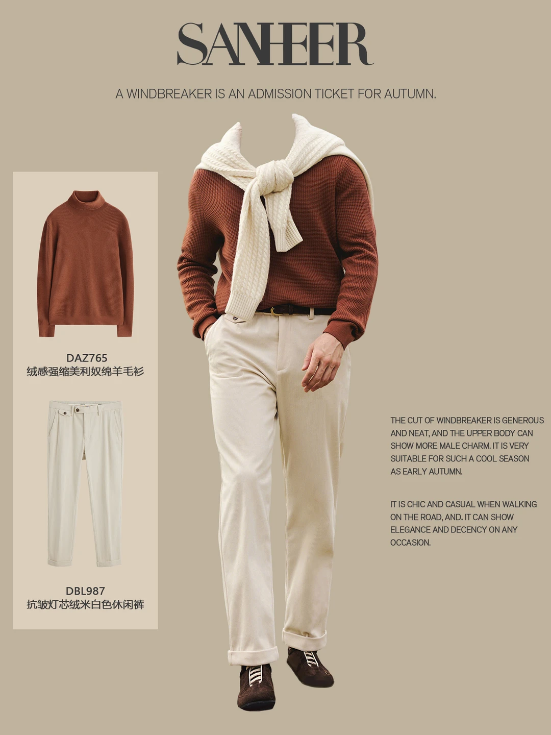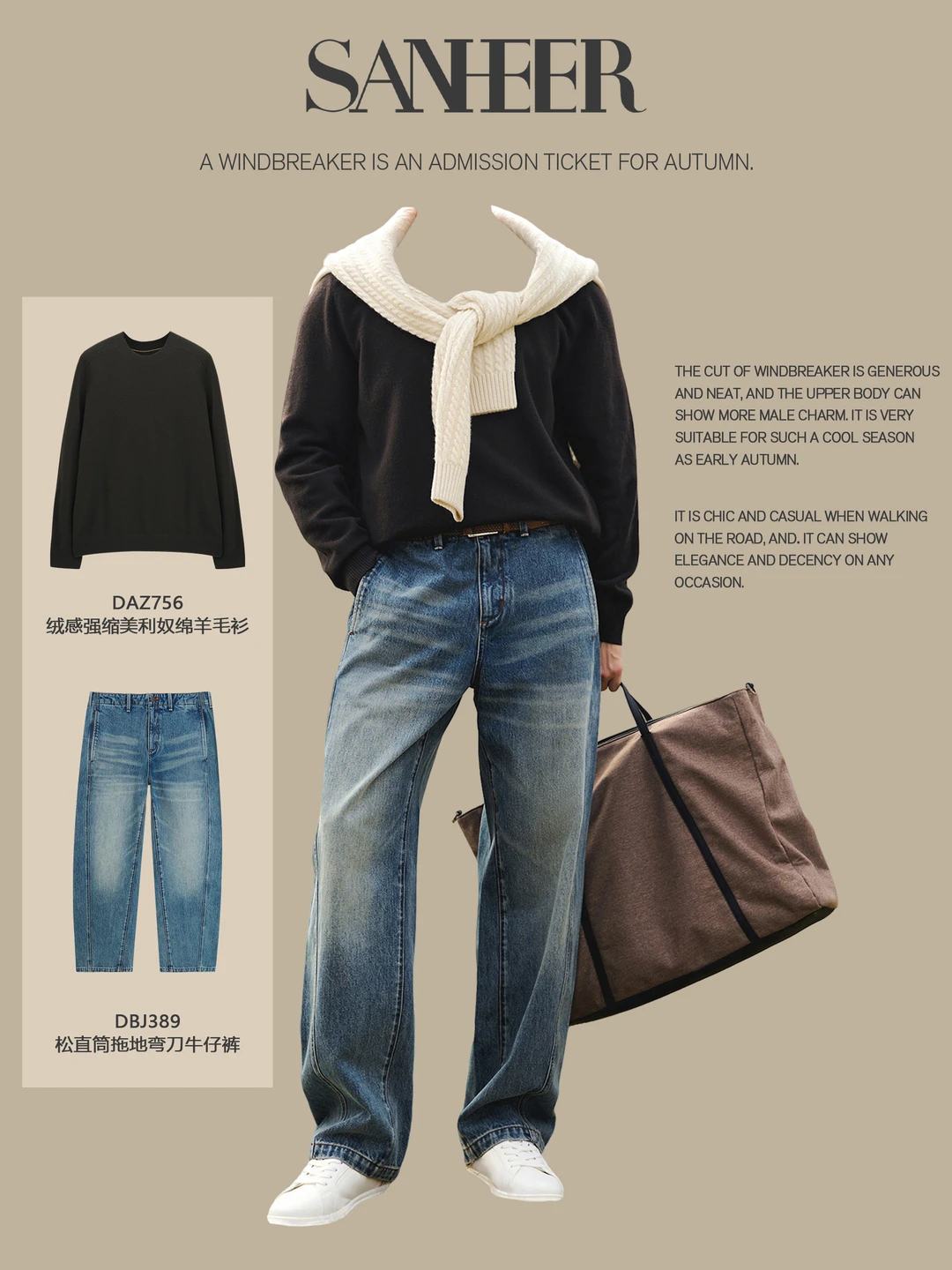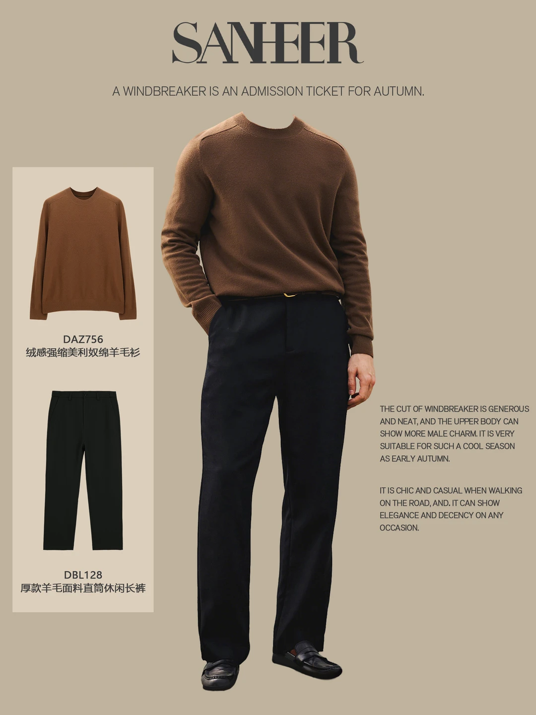棕毛衣 + 白裤 / 黑毛衣 + 牛仔软乎乎的针织衫 + 宽松裤,出门就是 “慵懒学长”