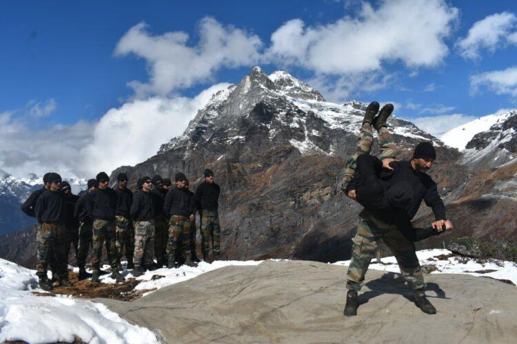 印度媒体近日报道,印度陆军特里沙克蒂军团( Trishakti Corps)在海拔超过4800米的地方进行格斗训练。训练在零下温度、稀薄空气和崎岖山地地形中进行,目的是让士兵即使在传统武器无法使用情况下也能在格斗中取胜, 据称训练“增强了反应能力、平衡感、耐力、战场意识和可控的侵略性——这些都是在极端地形中进行近距离作战成功所必需的特质。确保每位士兵在任何情况下都能保持战斗状态,强化了印度军队随时随地进行战斗并取得胜利的作战原则。” 特里沙克蒂军团主要部署在西里古里走廊和锡金。
