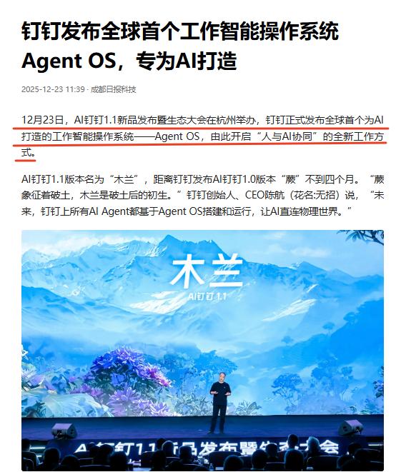 国内传来一个重磅消息,钉钉发布全球首个AI工作操作系统! 今年以来,“人工智能+