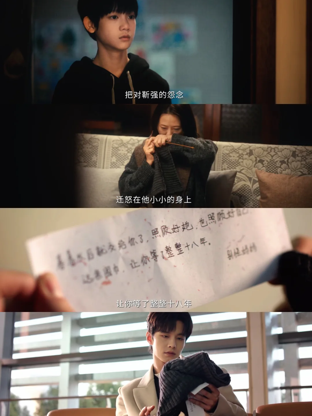 ‼️暮暮妈妈最终接纳靳朝,那条迟到了18年的围巾她终于送出去了,是给“儿子”靳朝也是给女婿的,她向靳朝表达歉意,那个时候把对靳强的怨念投射了一部分到小靳朝身上。