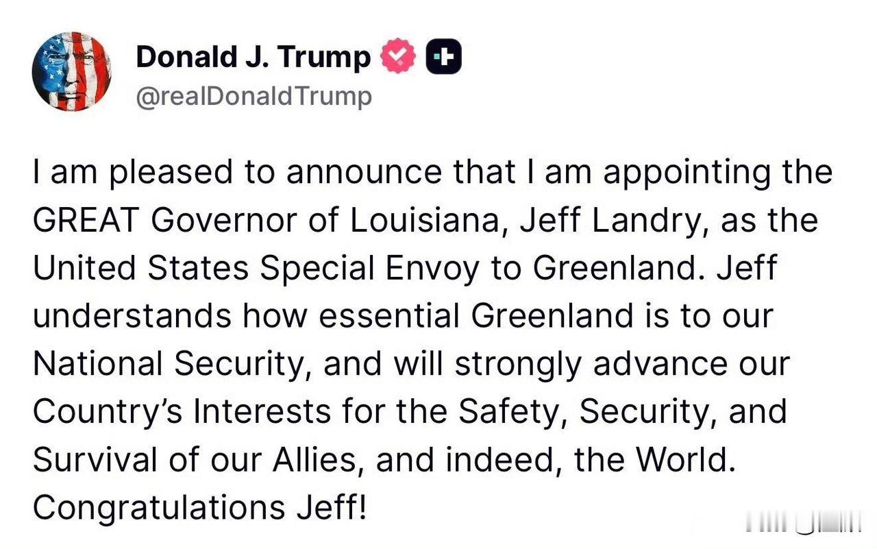 2025年12月21日,美国总统特朗普在社交平台宣布任命路易斯安那州州长杰夫·兰