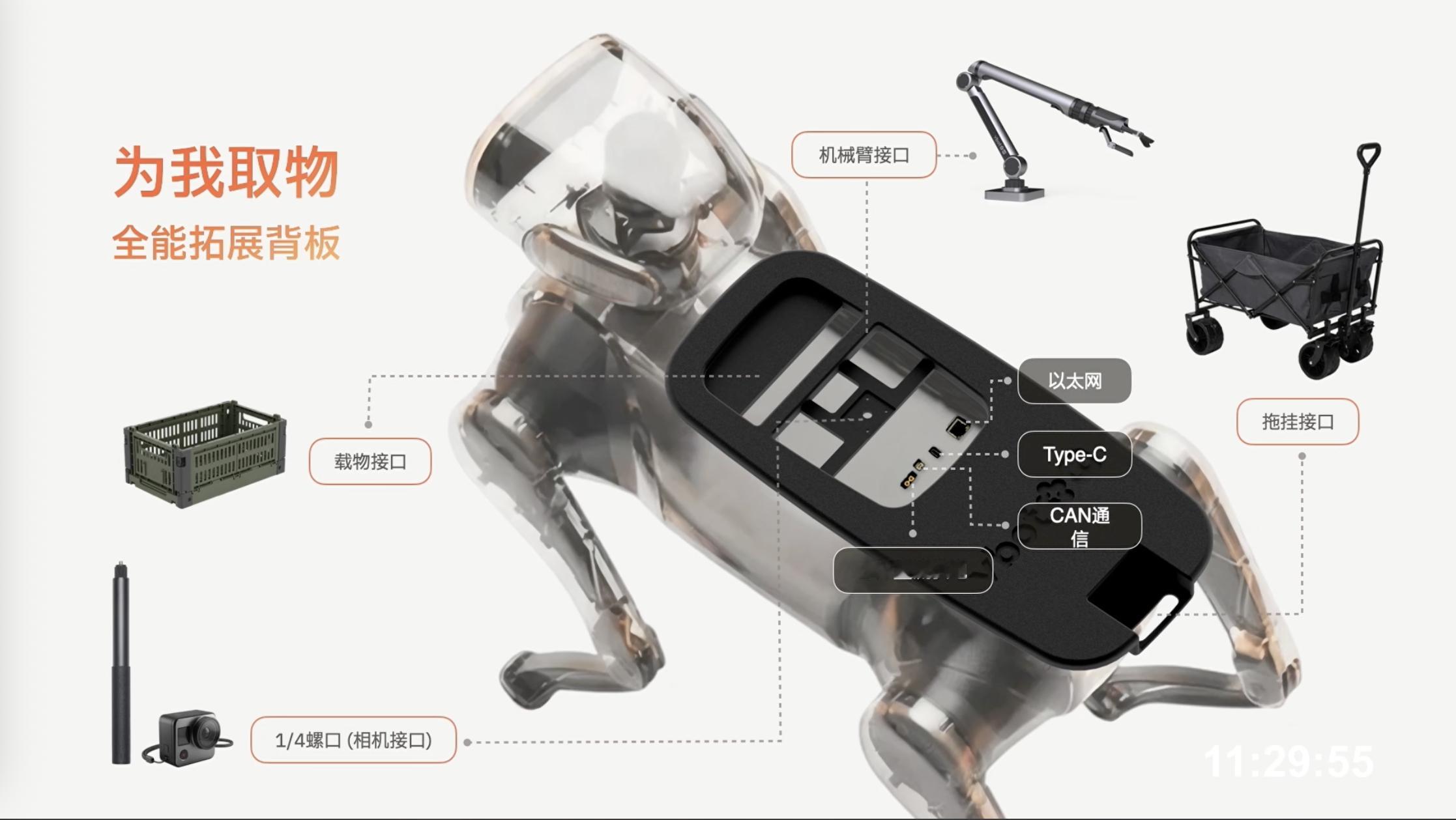 维他动力超能机器狗-大头波波的狗背有巨大的拓展接口,可以解锁很多好玩的场景。