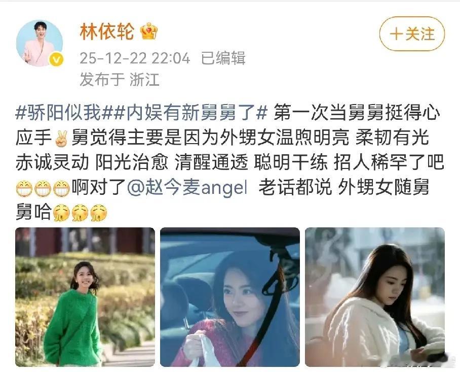 林依轮这是要和王耀庆争夺,互联网“舅舅”的称号了。《骄阳似我》开播后,林依轮已经