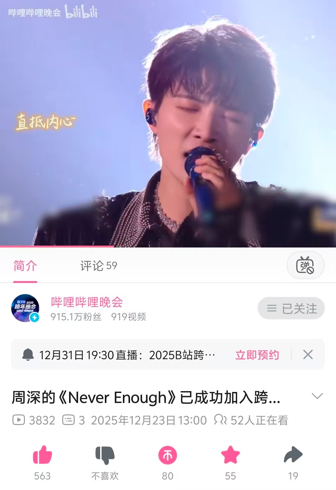 周深📣 12.23 哔哩哔哩更新 📣【哔哩哔哩跨年晚会】在各平台更新了深深