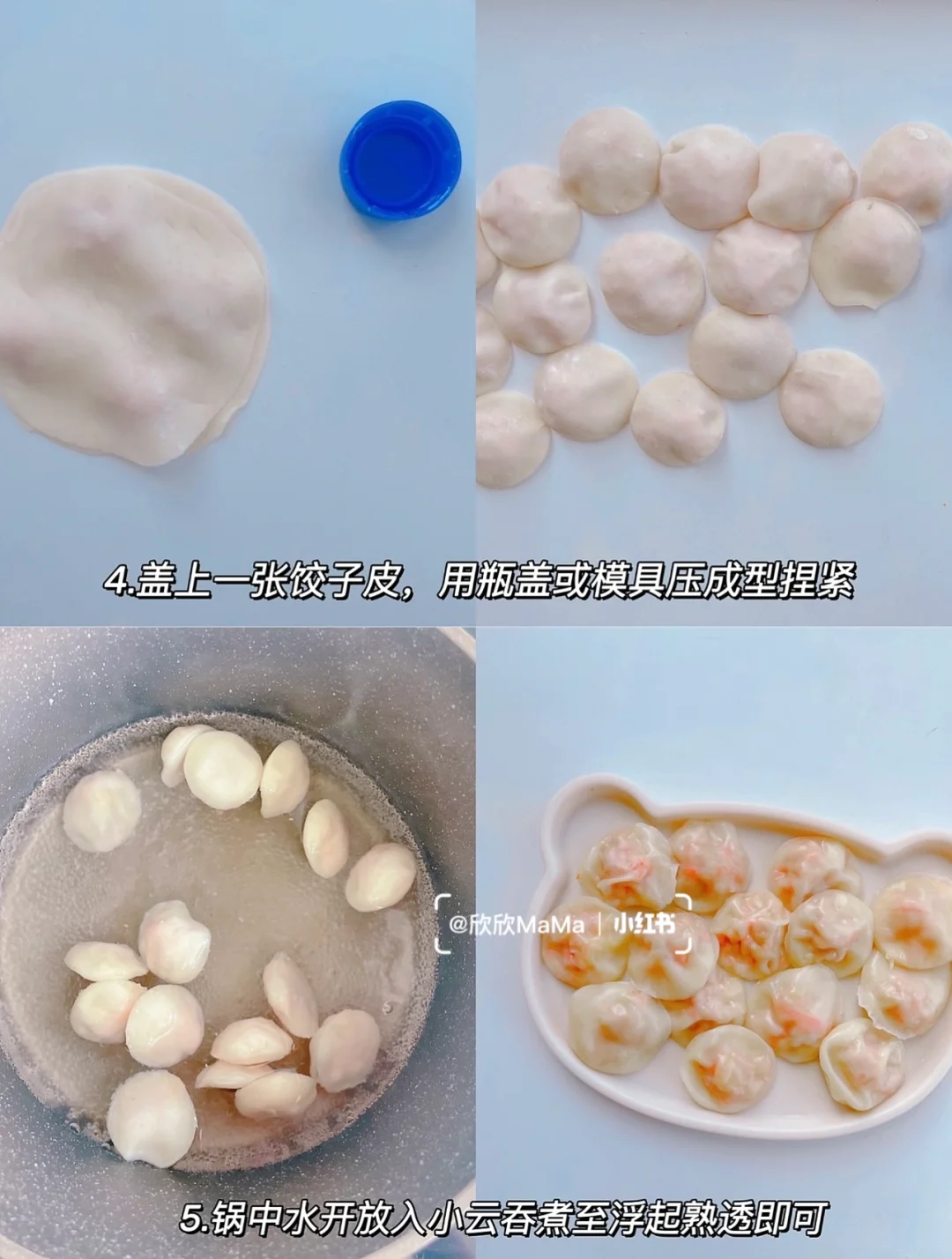 今天分享的这道辅食做法真是太简单啦!一个瓶盖就能做成一口一个的小云吞,配料里有猪肉、胡萝卜、包菜、荤素搭配,营养美味!妈妈们要给宝宝安排起来哦!
