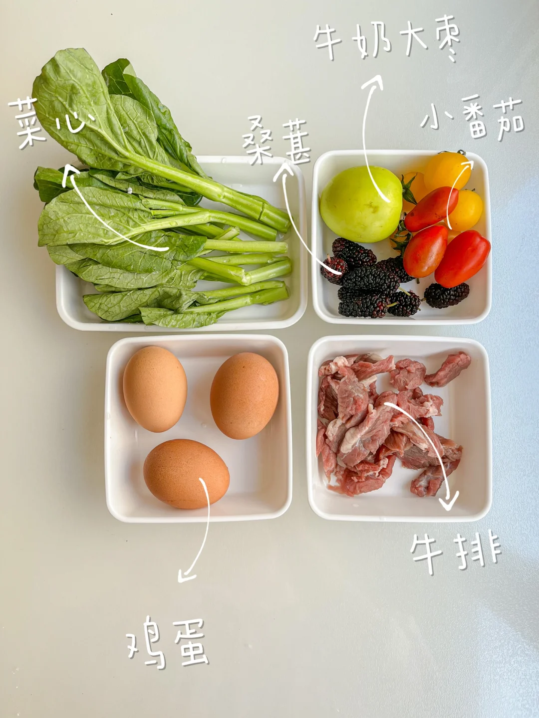 有蛋有肉有蔬菜 还有水果拼盘~
