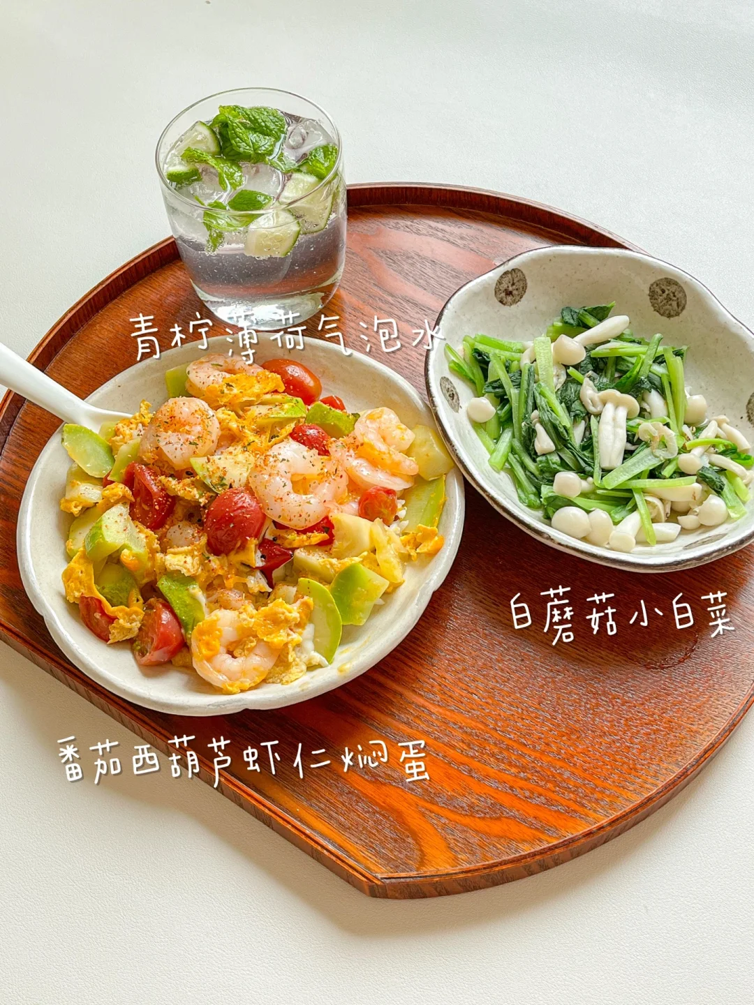 在享受应季蔬菜的时候,与家人相视而笑:“真好吃,现在就是吃这个的时候。” ———蔬菜教室 烹调蔬菜只需要最基本的调味料就够了。调味料终究是配角,它们的作用是辅助蔬菜。要是调味料喧宾夺主,那蔬菜的味道就会被盖住[萌萌哒R] 今日午餐: ¹西葫芦小番茄虾仁焖蛋饭 ²白蘑菇炒小白菜 ³青柠薄荷气泡水