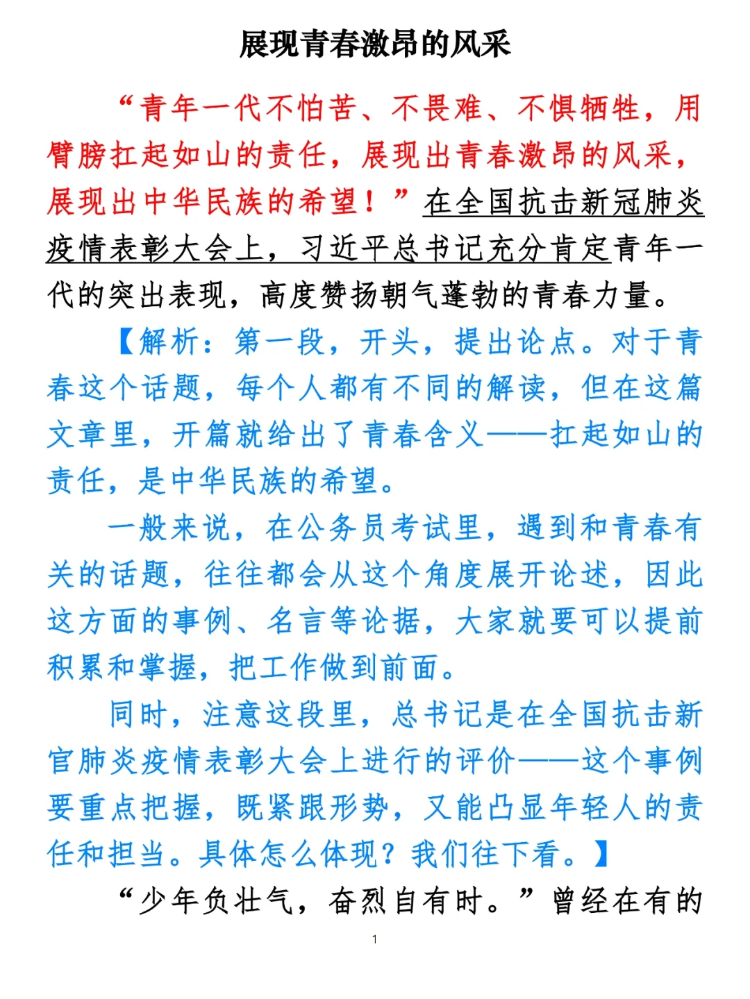“少年负壮气,奋烈自有时。”李白的这首诗,展现了我们的民族之魂,也体现了青年的担当。我们不论是学习备考,还是以后参加工作,身体可以劳累,但志气不可懈怠。 今天,我们就来学一篇“青春”“志气”相关主题的申论范文,给自己打气,继续加油!