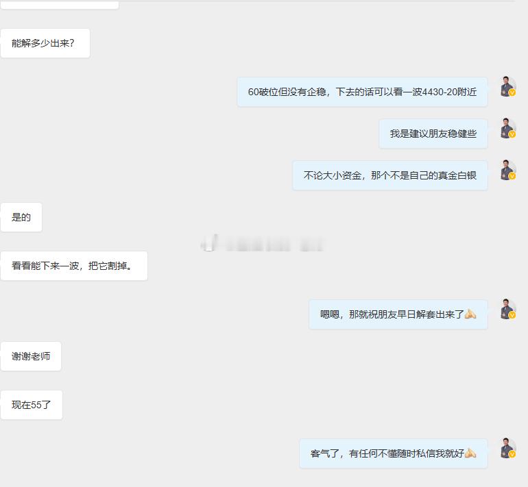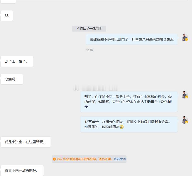 老方在线实力解套,一切展现皆是真刀真枪、真金白银每天都会收到一些来自粉丝朋友们的私信,有时为了安慰和帮助他们,熬夜都已成为必不可免的事情,你们能够在最无助的时候找到我,那证明是需要我认可我,那么我就会尽自己最大的努力去帮助到大家!也希望大家可以通过我的帮助而收获到自己想要的东西,一起加油努力走上人生巅峰,虽然老方的个人能力有限,但我绝对尽心尽力,不会放弃任何一个人!老方在线解套一切解套皆为实时黄金金价