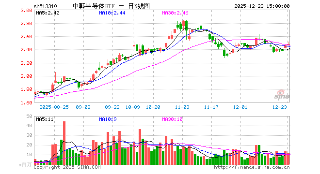 12月23日中韩半导体ETF(513310)份额增加500.00万份,最新份额14.26亿份,最新规模34.67亿元