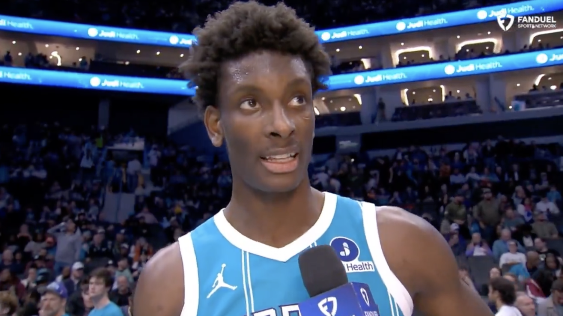 黄蜂球员穆萨-迪亚巴特在中场结束时接受了记者采访。